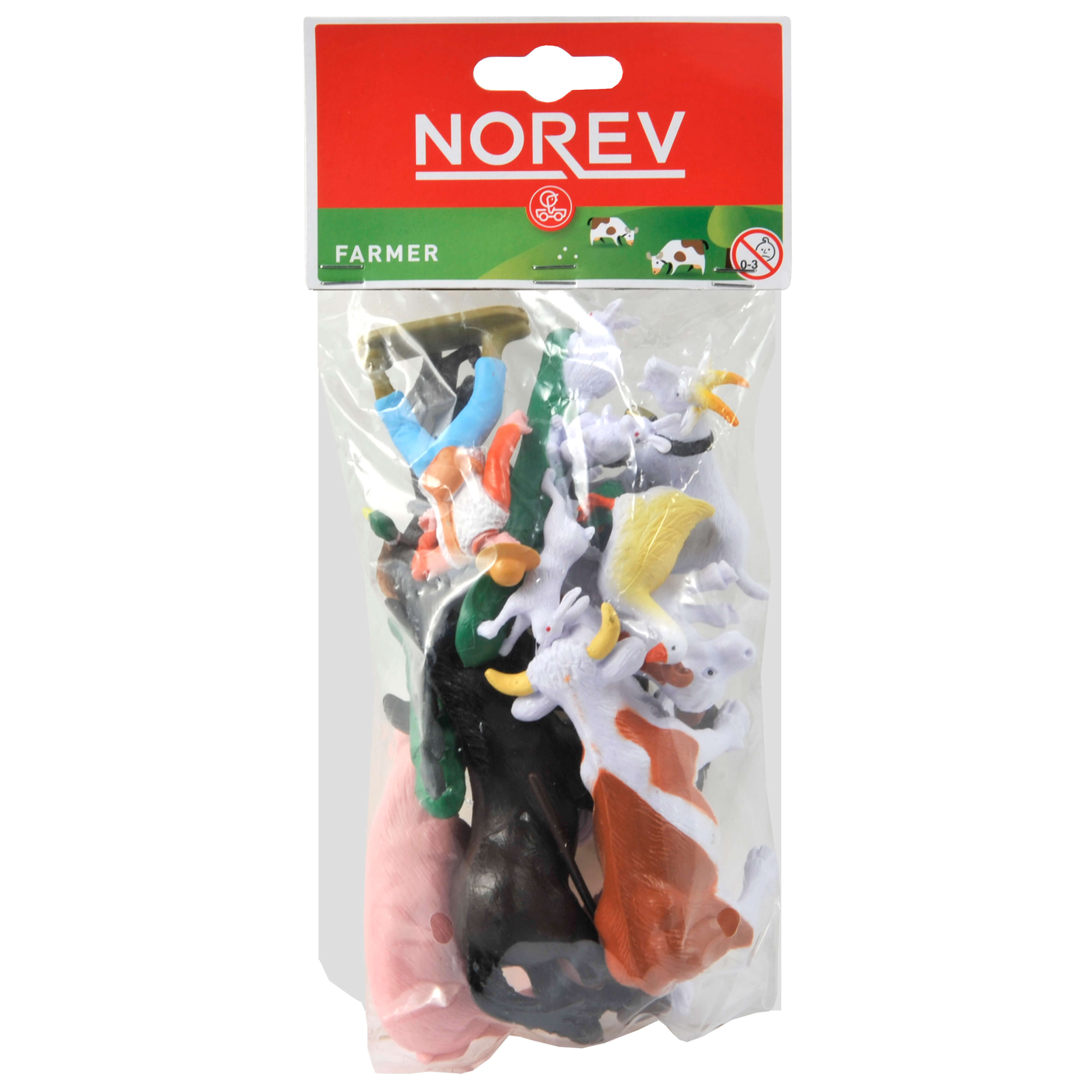 Découvrez la vie à la campagne avec ce lot de figurines réalistes : un fermier avec sa fourche, une vache et son veau, un cheval et son poulain, une truie avec son porcelet, une chèvre, un chien, une oie, un coq, une poule accompagnée de deux poussins ainsi que trois lapins.