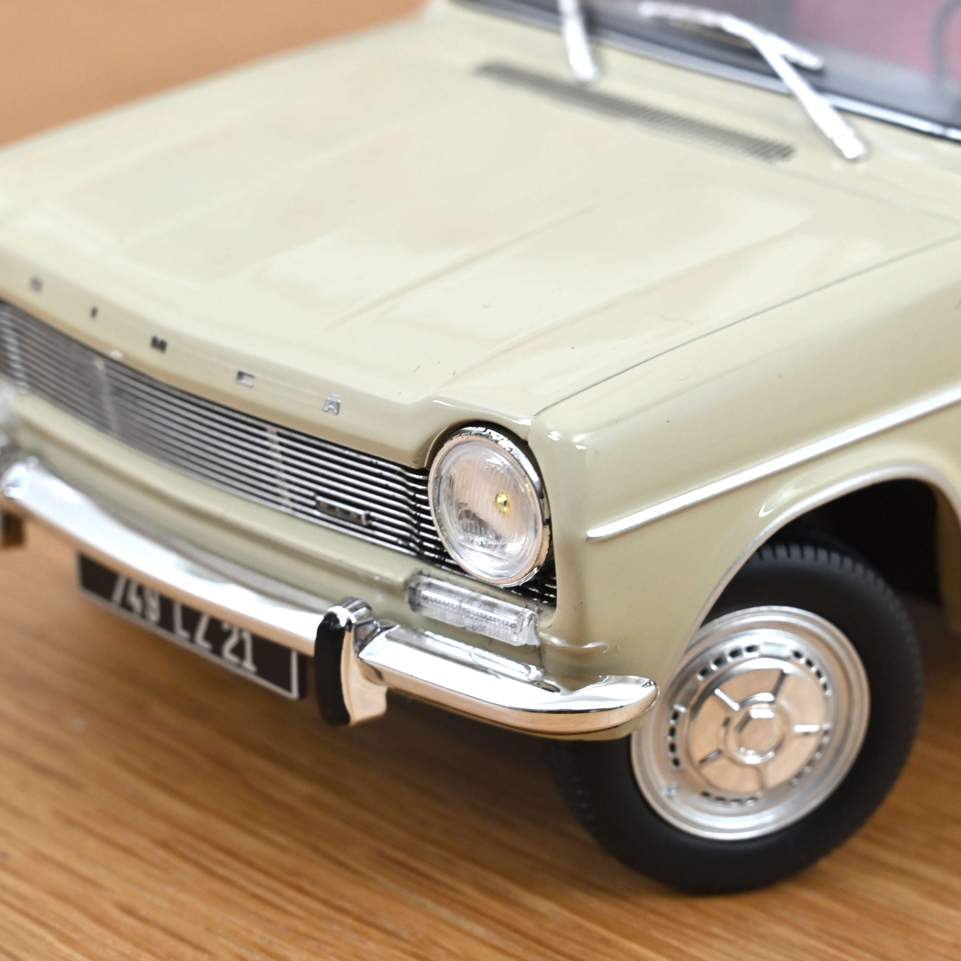 Sur cette miniature Norev, la teinte sobre Beige Anthéor est associée à une sellerie rouge beaucoup plus expressive.