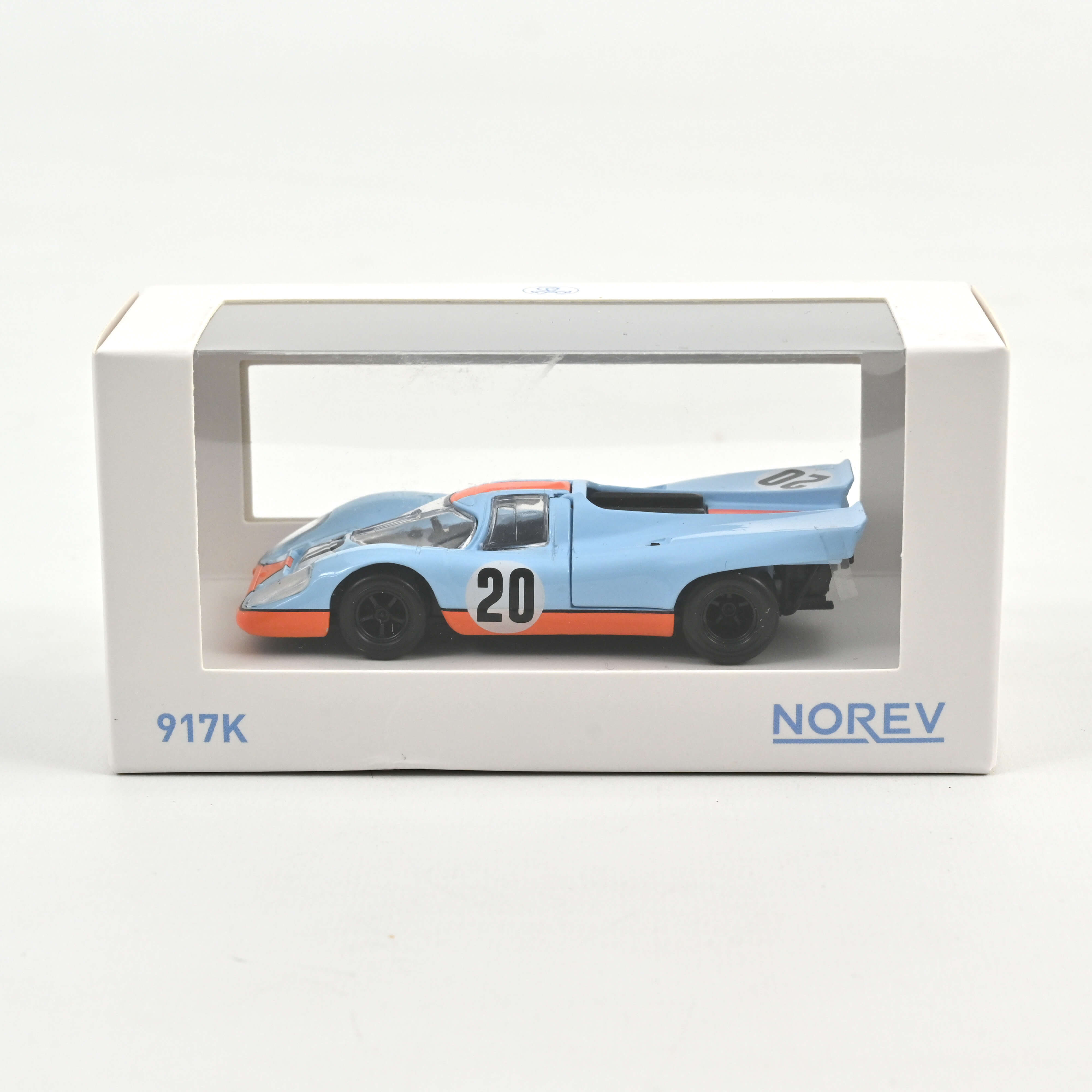 Notre miniature jouet reproduit cette Porsche 917 au célèbre numéro 20, avec un capot moteur ouvrant.