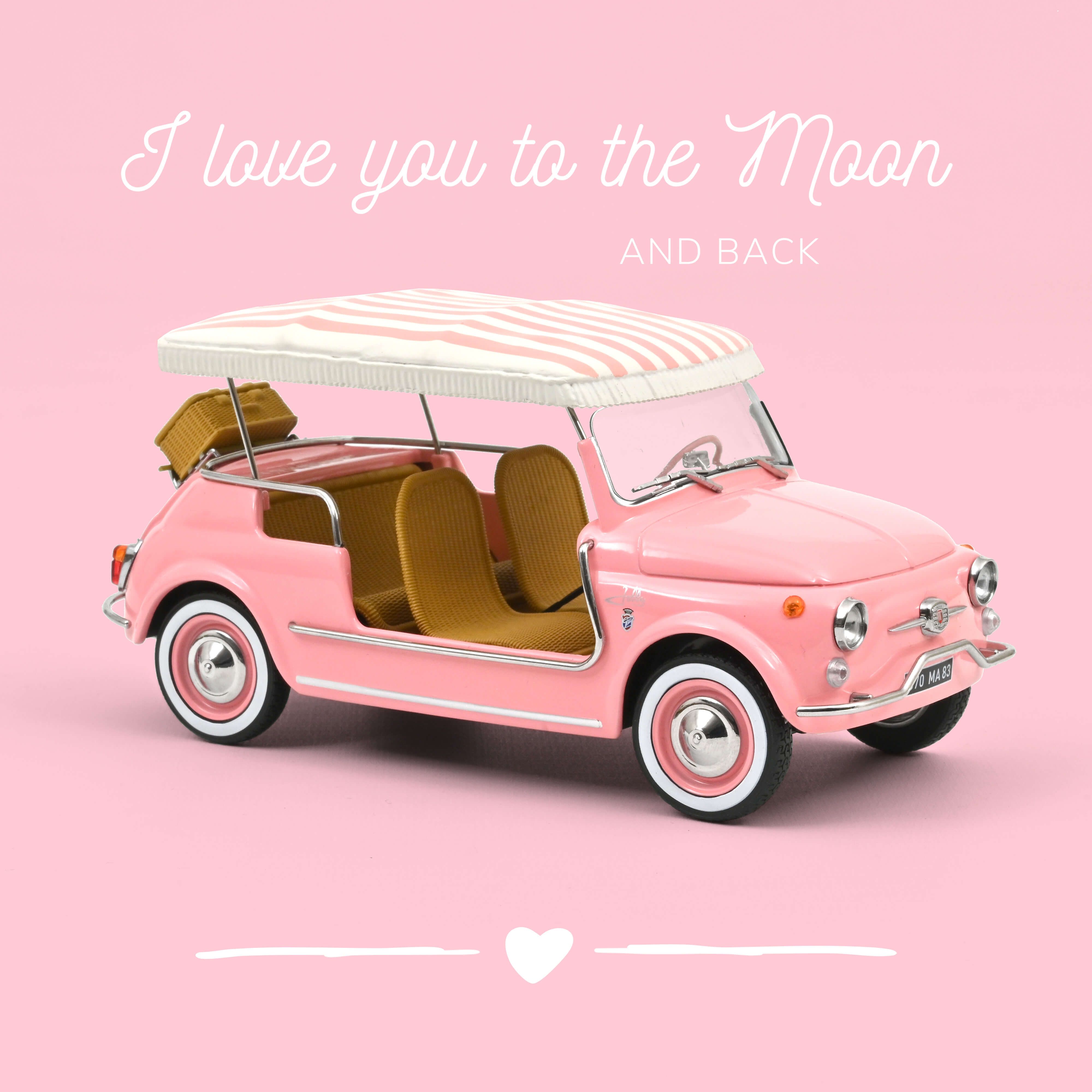 Pour la Saint-Valentin, cette miniature 1/18 se pare d’un rose délicat et lumineux, symbole de douceur et de romantisme. Plus qu’une miniature, cette Fiat 500 Jolly est une déclaration d’amour : un objet décoratif élégant, un cadeau plein de sens et une invitation à partager un instant hors du temps. 💕