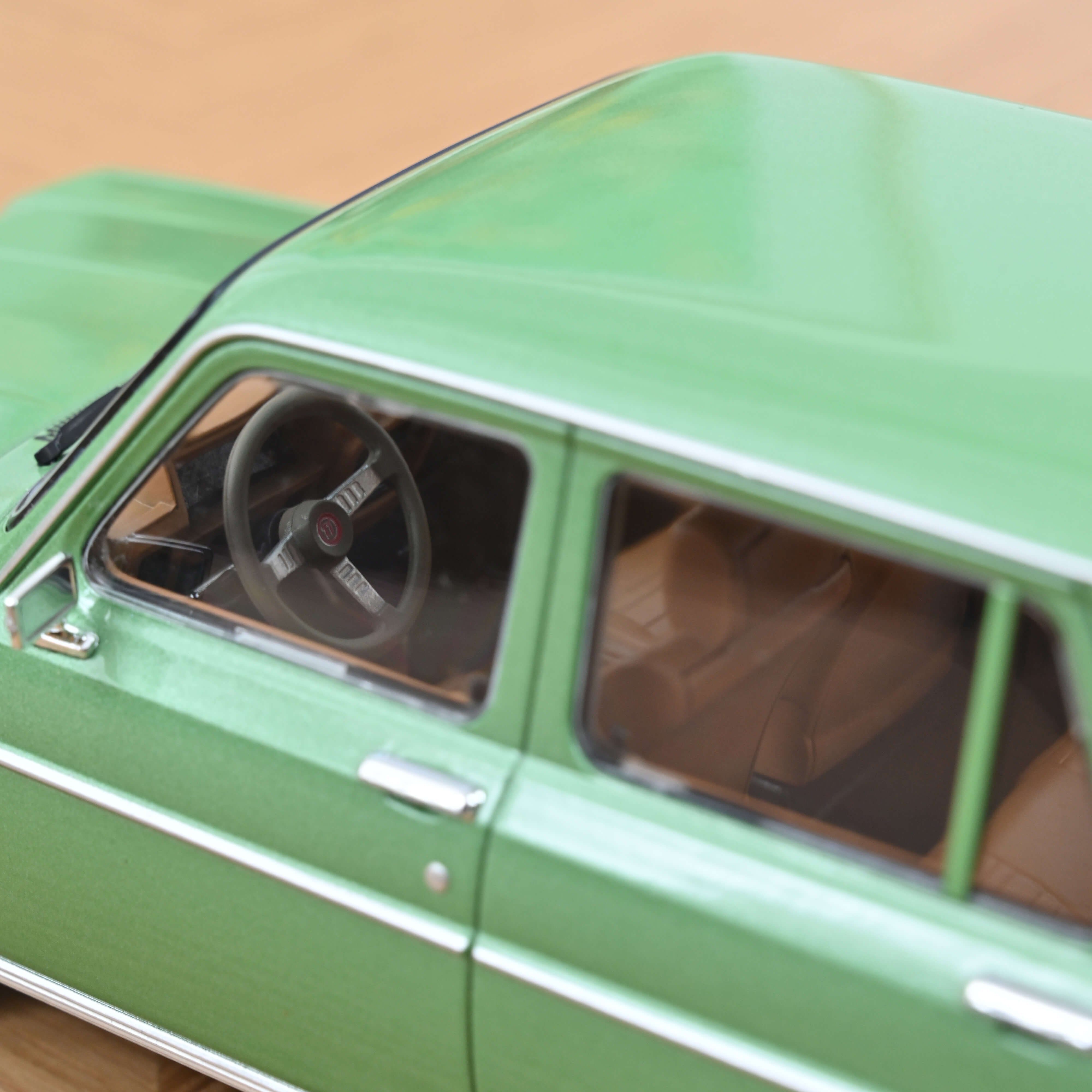 Le vert adriatique est original, l'intérieur bien détaillé, une réalisation tout aussi soignée que la précédente 1100 en "sandalwood metallic" mais avec de nouveaux feux et poignées de portes (restylage millésime 1975).