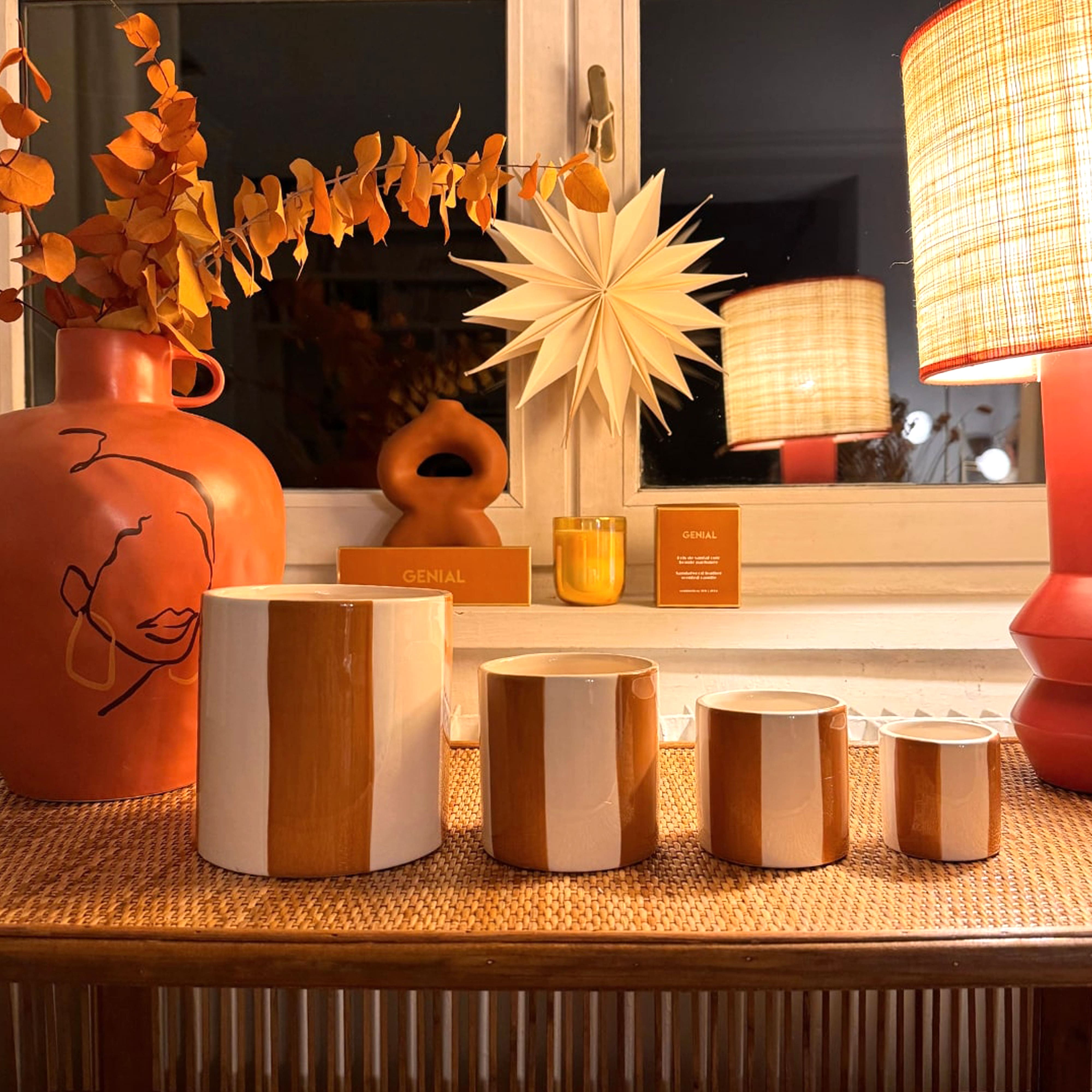 Ensemble de 4 pots à rayures marron, la tendance de la saison !