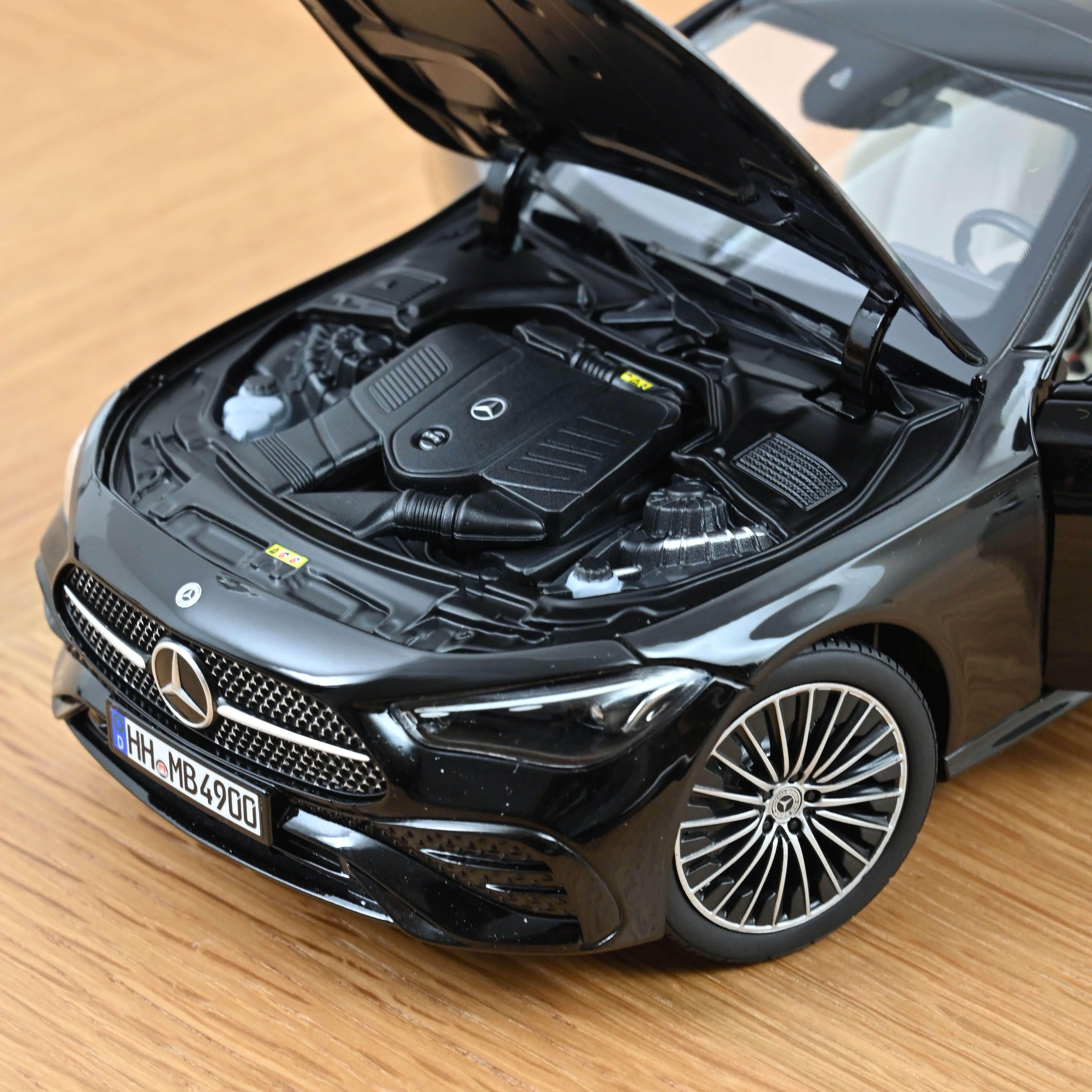 Le noir obsidienne métallisé, numéro de couleur DB197, fait partie depuis de nombreuses années du programme de couleurs de Mercedes-Benz. C'est pourquoi nous avons choisi cette couleur élégante pour notre modèle élaboré. Ouvrez les capots et les portes et découvrez le luxe et la technique du CLE en miniature.