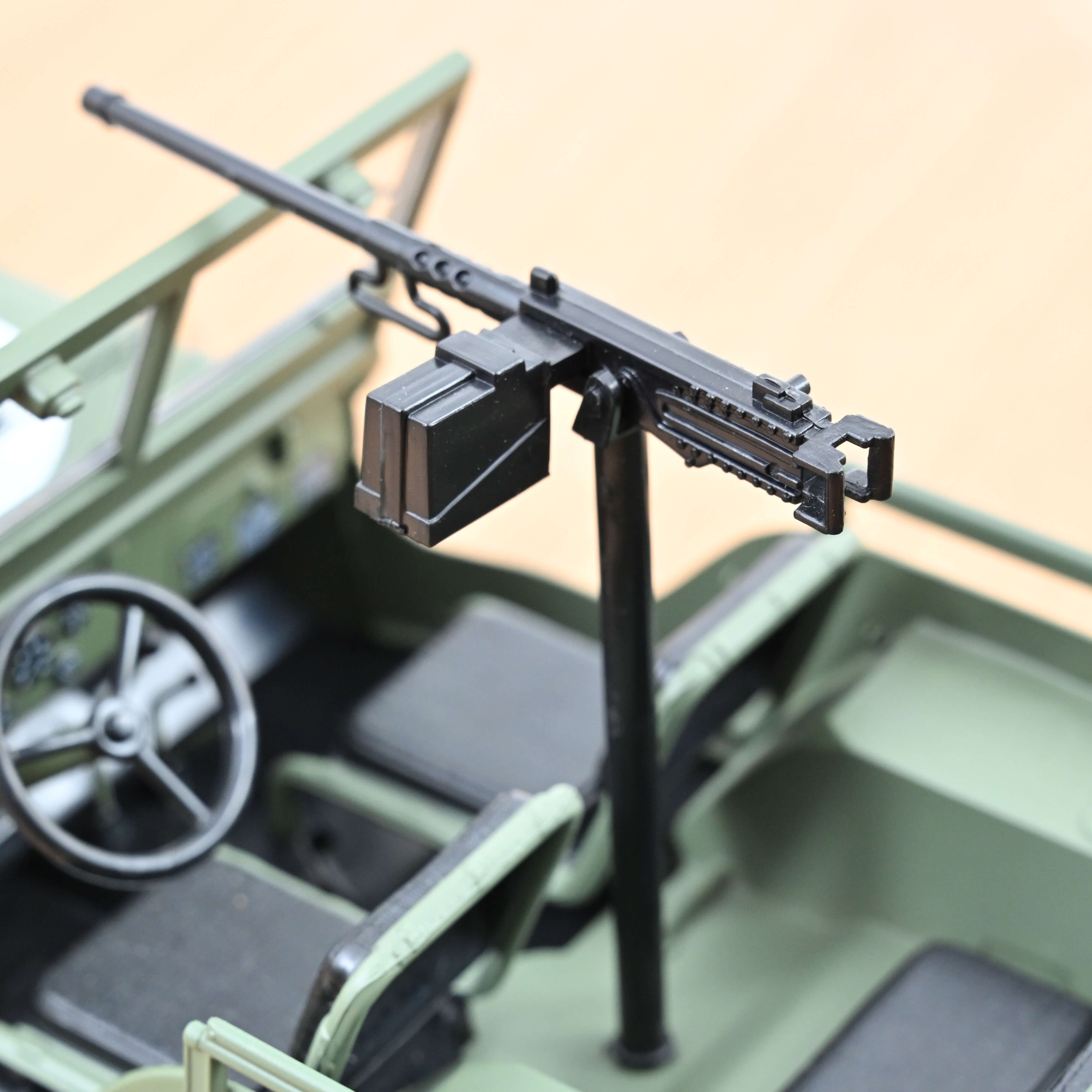 Cette miniature comporte une mitraillette, le parebrise est pivotant.