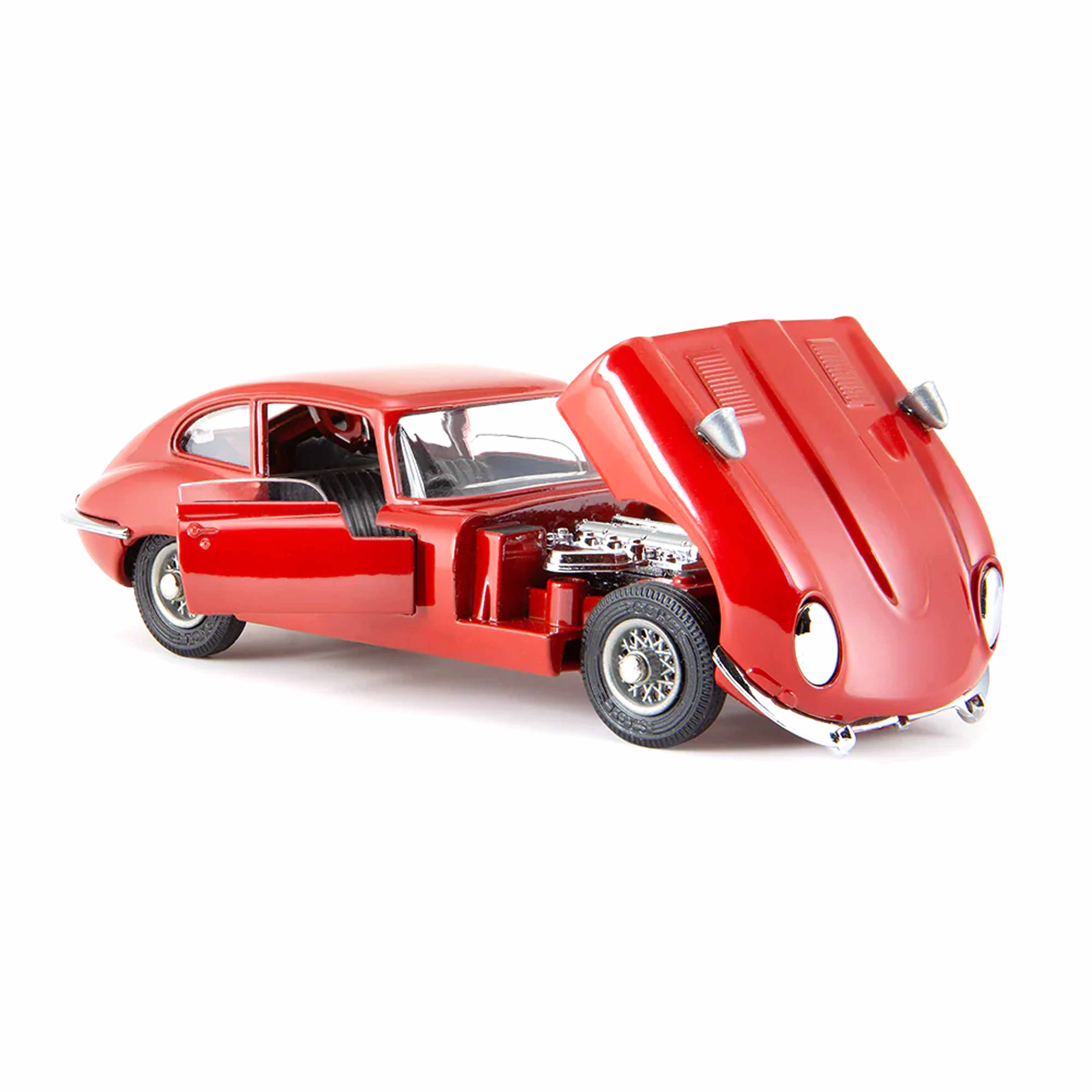 Lancée dans la gamme des jouets Corgi en 1968, cette voiture de sport Jaguar classique a été produite en deux couleurs - rouge ou bleu métallisé. Les deux versions étaient dotées d'un capot ouvrant, avec un moteur de 4,2 litres merveilleusement détaillé et des portes qui s'ouvraient pour révéler des sièges miniatures inclinables. Les détails ne s'arrêtent pas là puisque Corgi a doté le modèle de minuscules rétroviseurs montés sur le capot, d'un échappement moulé séparément et de roues à rayons magnifiquement modélisées. La seule caractéristique controversée était l'emballage en plastique transparent « à bulles » du modèle, qui était difficile à ouvrir. Par conséquent, très peu d'emballages originaux de ce classique Corgi existent aujourd'hui dans un état intact.