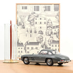 Für unser Groß-Modell des 300 SL haben wir uns bei der Farbwahl für Graphitgrau entschieden. 108 der insgesamt 1400 gebauten 300 SL Coupé wurden in dieser Farbe ausgeliefert – und war somit die vierthäufigste nach silber, weiß und rot. In Verbindung mit einem roten Innenraum eine sehr gelungene Kombination – in 1:1 wie in 1:12.