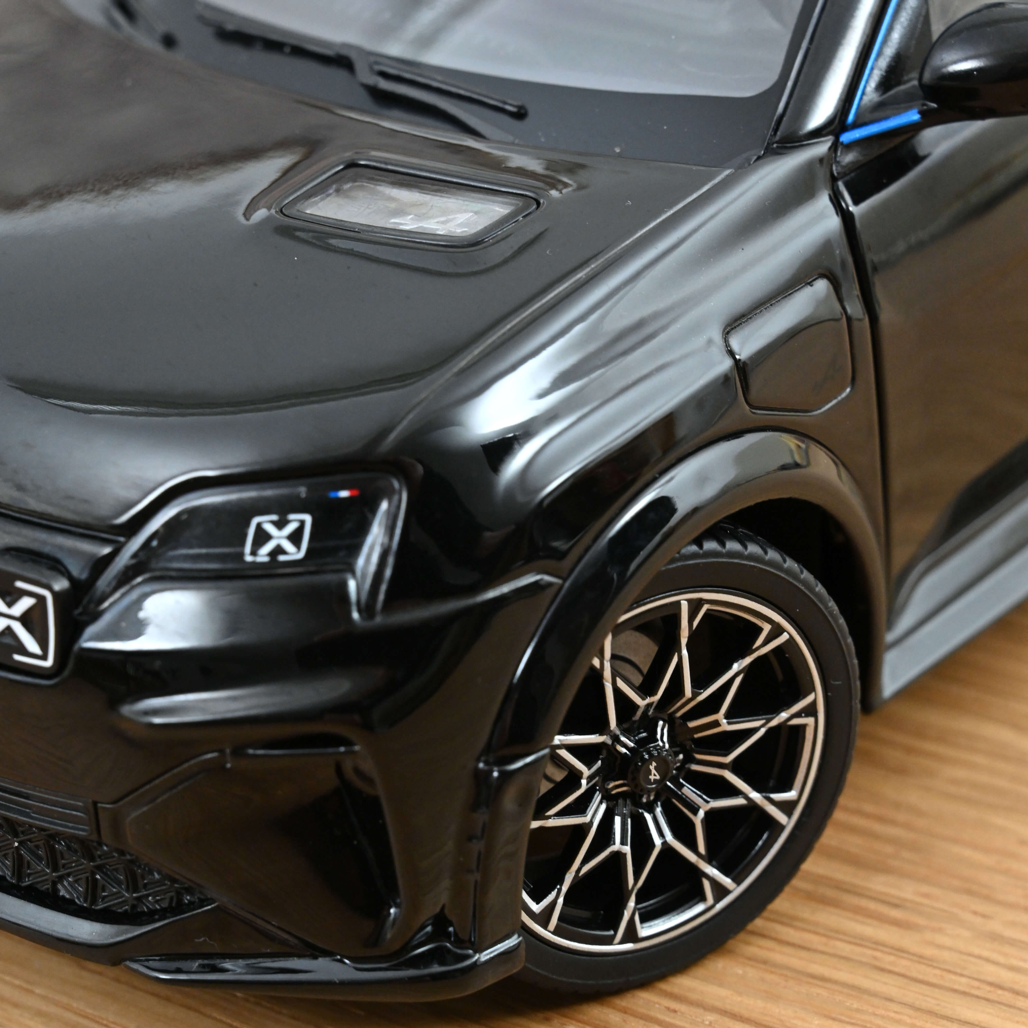 Diese schwarze Version des A290 mit 19-Zoll-Leichtmetallrädern, Kotflügelverbreiterungen und LED-Scheinwerfern mit X-förmigem Leuchtsignatur betont exklusive Details wie blauen Zierrahmen um die Fenster und matte Alpine-Logos auf der glänzenden schwarzen Lackierung. Innen bildet das Nappa-Leder einen eleganten Kontrast zur tiefschwarzen Karosserie. Ein dezentes und elegantes Modell.