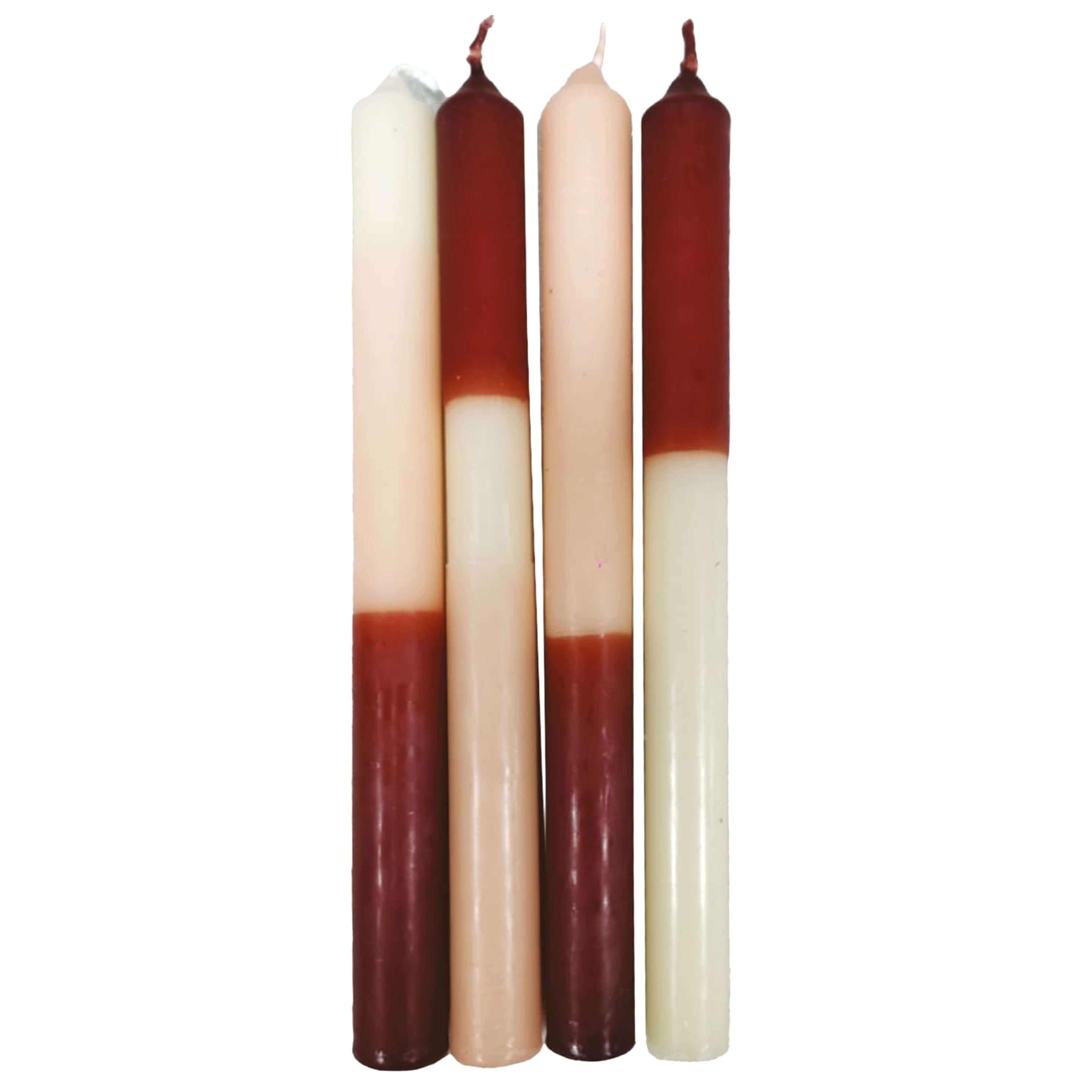 Satz von 4 zweifarbigen langen Kerzen in Nudes