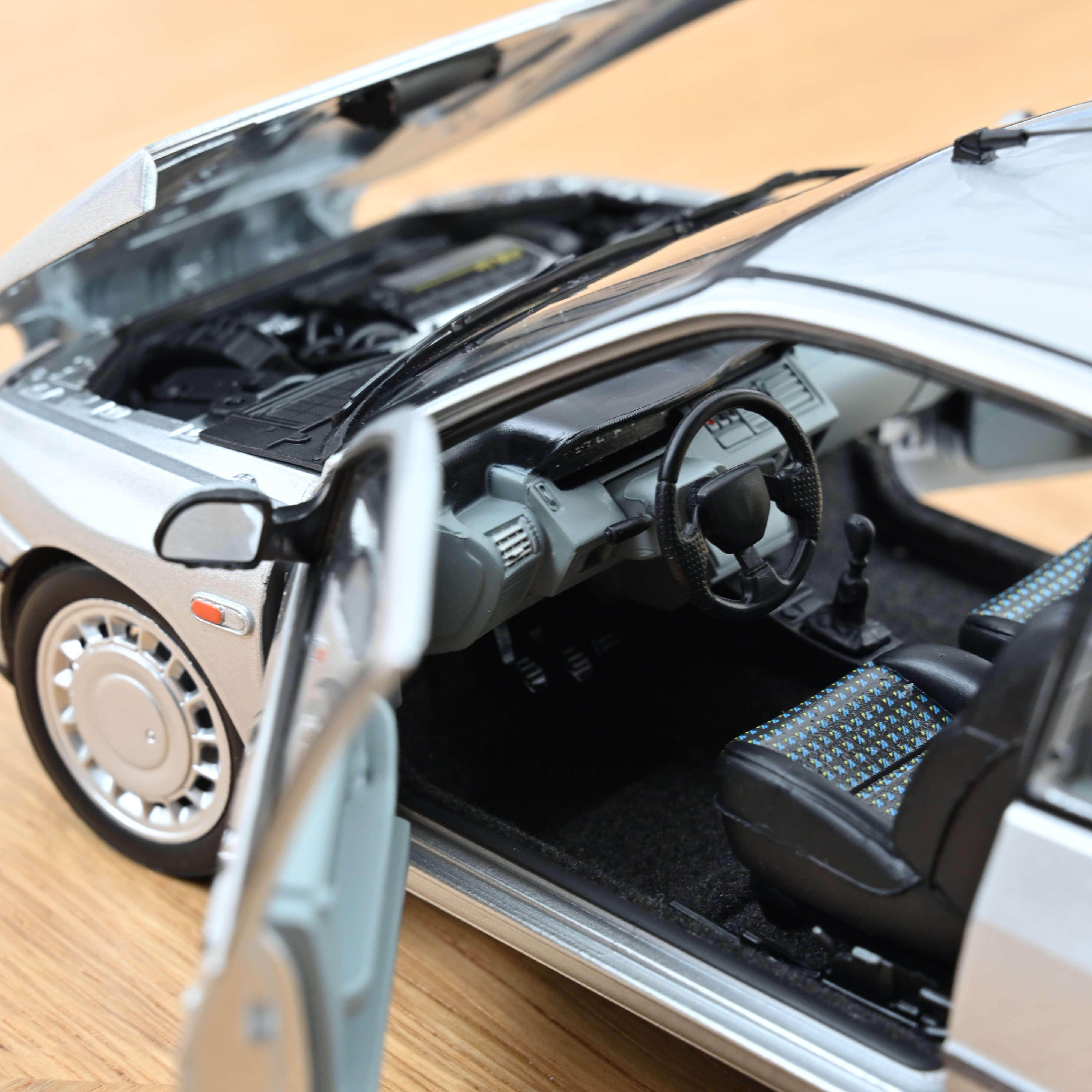 Unser Miniaturmodell in Eisberggrau reproduziert getreu die erste Phase mit zu öffnenden Türen, Motorhaube und Heckklappe und enthüllt das charakteristische Interieur des Clio 16S.