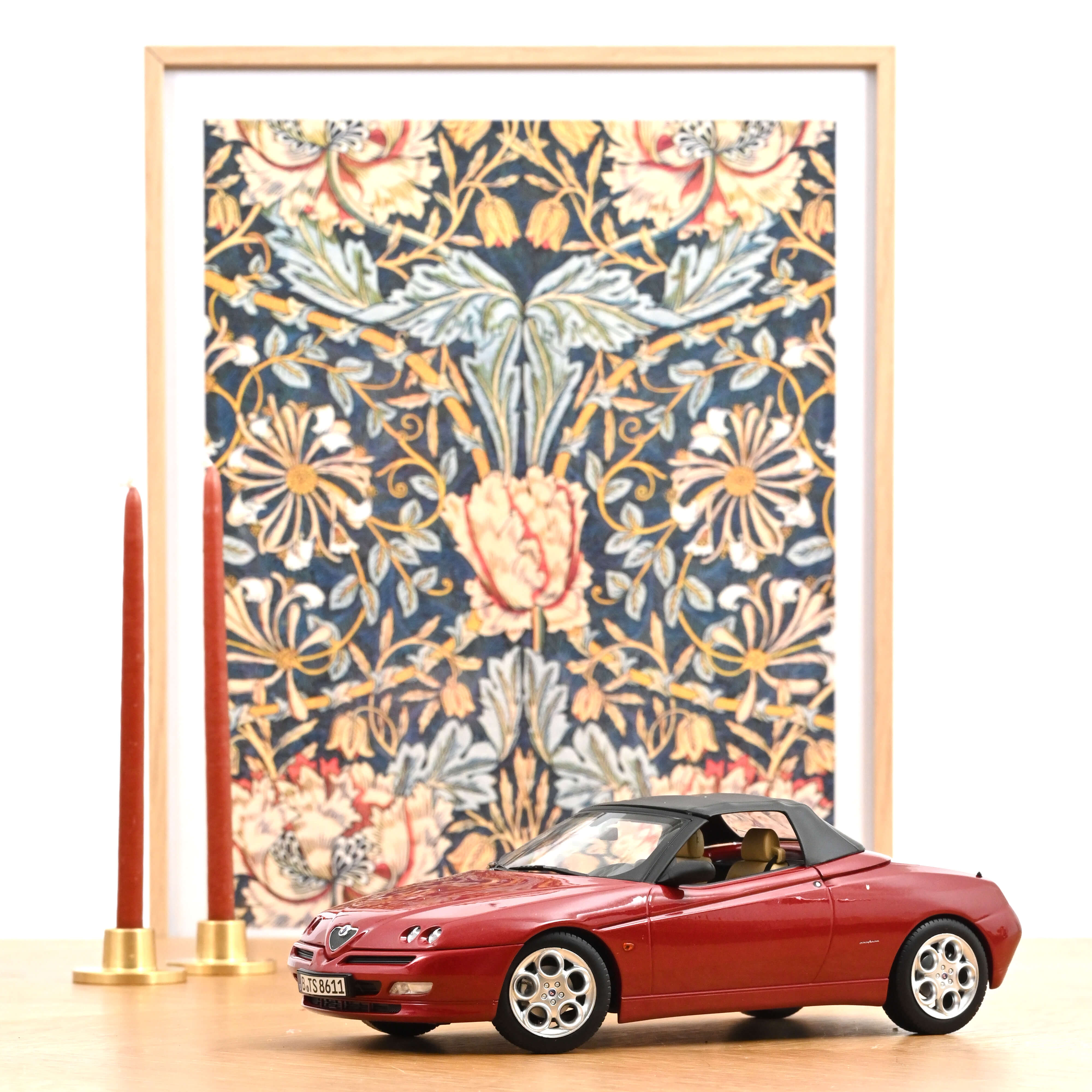 Entdecken Sie das NOREV 1:18 Modell des Alfa Romeo Spider 1999 in Rot mit beigem Interieur. Ohne zu öffnende Teile, aber als Cabrio ist das Cockpit perfekt sichtbar. Der Spider, die offene Variante der GTV, wurde 1994 auf dem Pariser Autosalon vorgestellt und von 1995 bis 2004 produziert. Elegant, sportlich und zeitlos verkörpert er den Alfa-Romeo-Geist mit fließenden Linien und Leidenschaft. Ein unverzichtbares Sammlerstück für Liebhaber italienischer Klassiker.