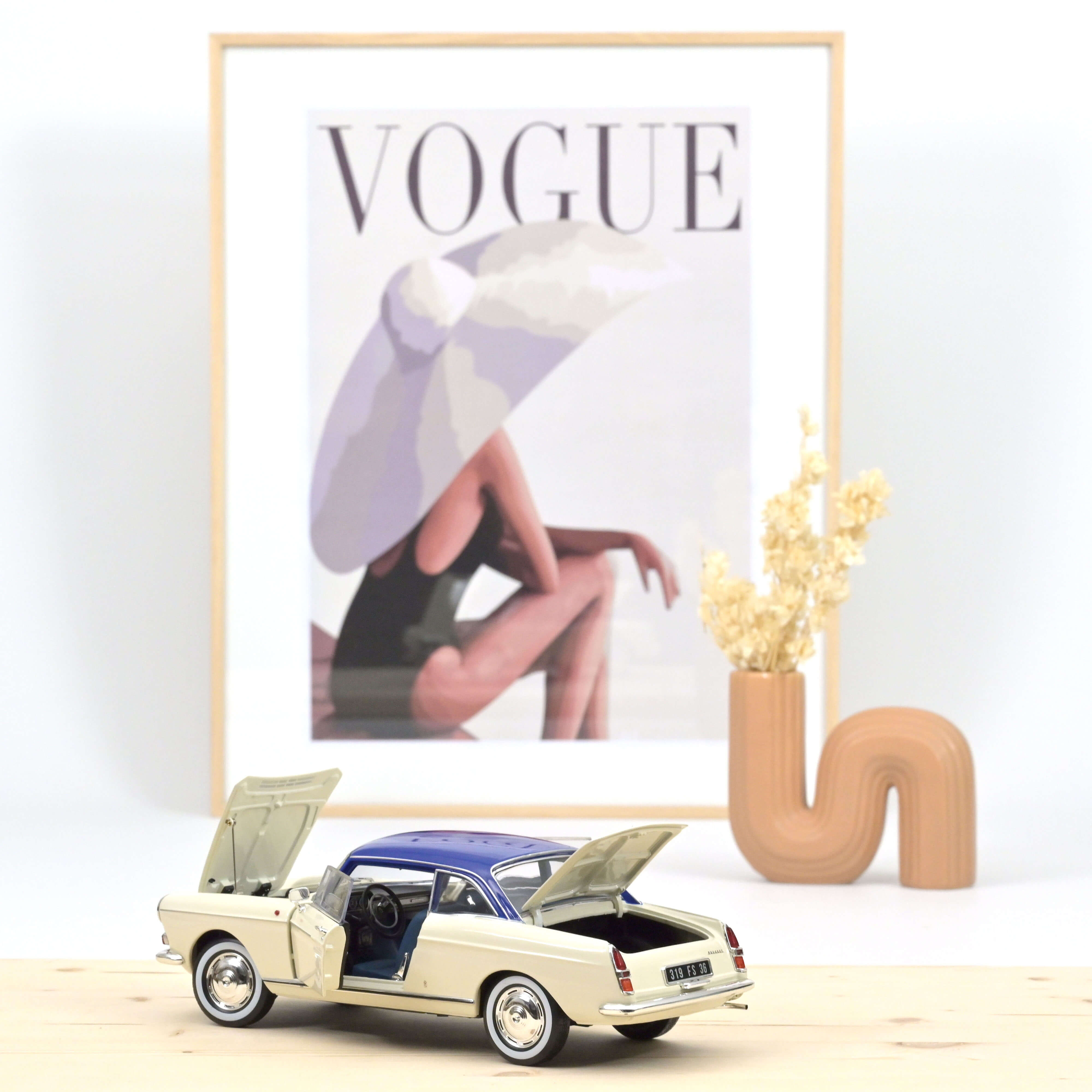 Diese personalisierte cremefarbene Version des Peugeot 404 Coupé mit blauem Dach hebt die Verwandtschaft zwischen dem Coupé und dem Cabriolet deutlich hervor.
