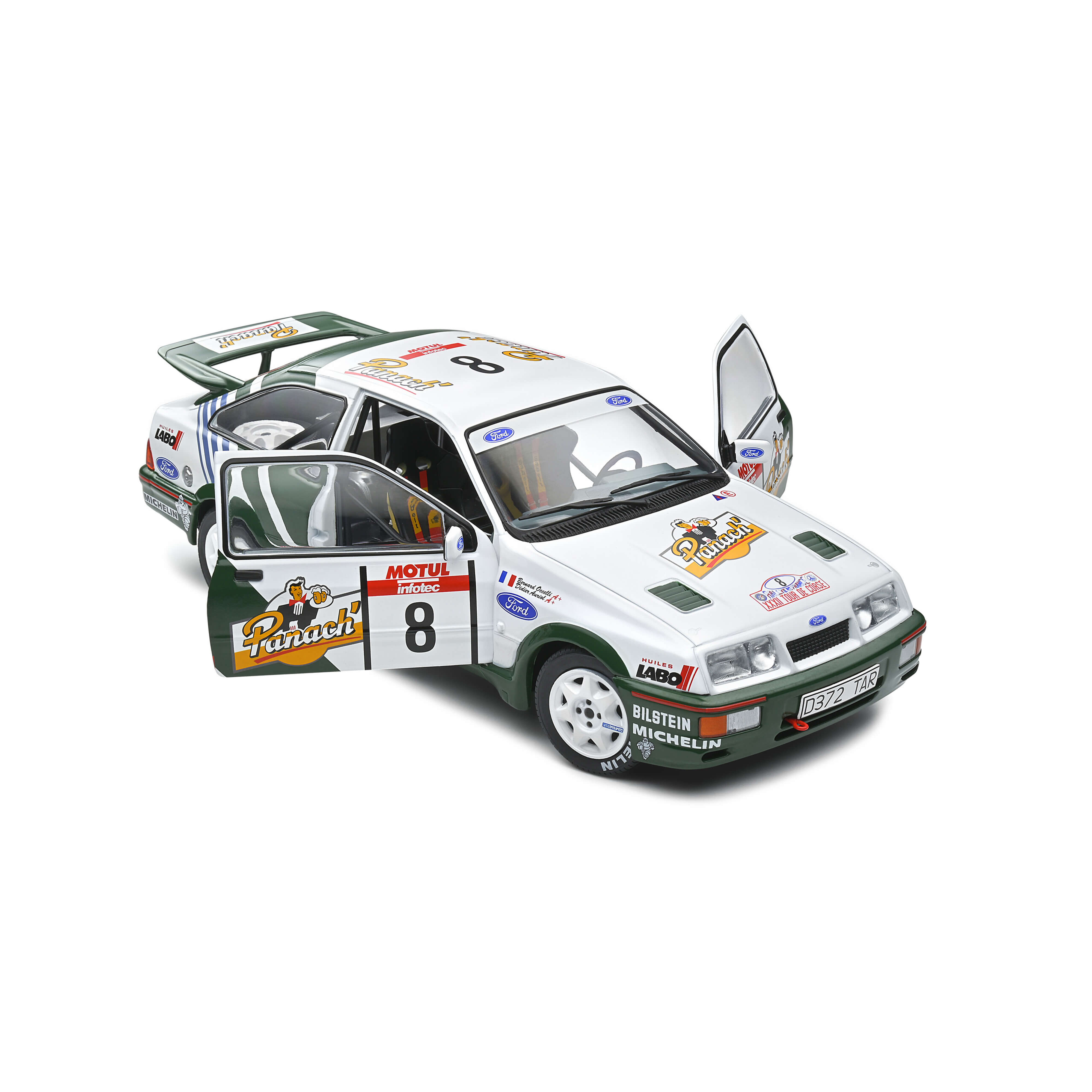 In seiner zweiten Saison mit Ford wechselt Didier Auriol den Hauptsponsor. Nunmehr unter den Farben von „Panach'“ startet der Hoffnungsträger Echappement 1983 schlecht in die Saison 1988. Doch schon bei der dritten Rallye kehrte er zum Siegen zurück. Und als er die legendäre Tour de Corse gewann, wurde er zur Legende des französischen Rallyesports, genau wie sein weiß-grüner Sierra!