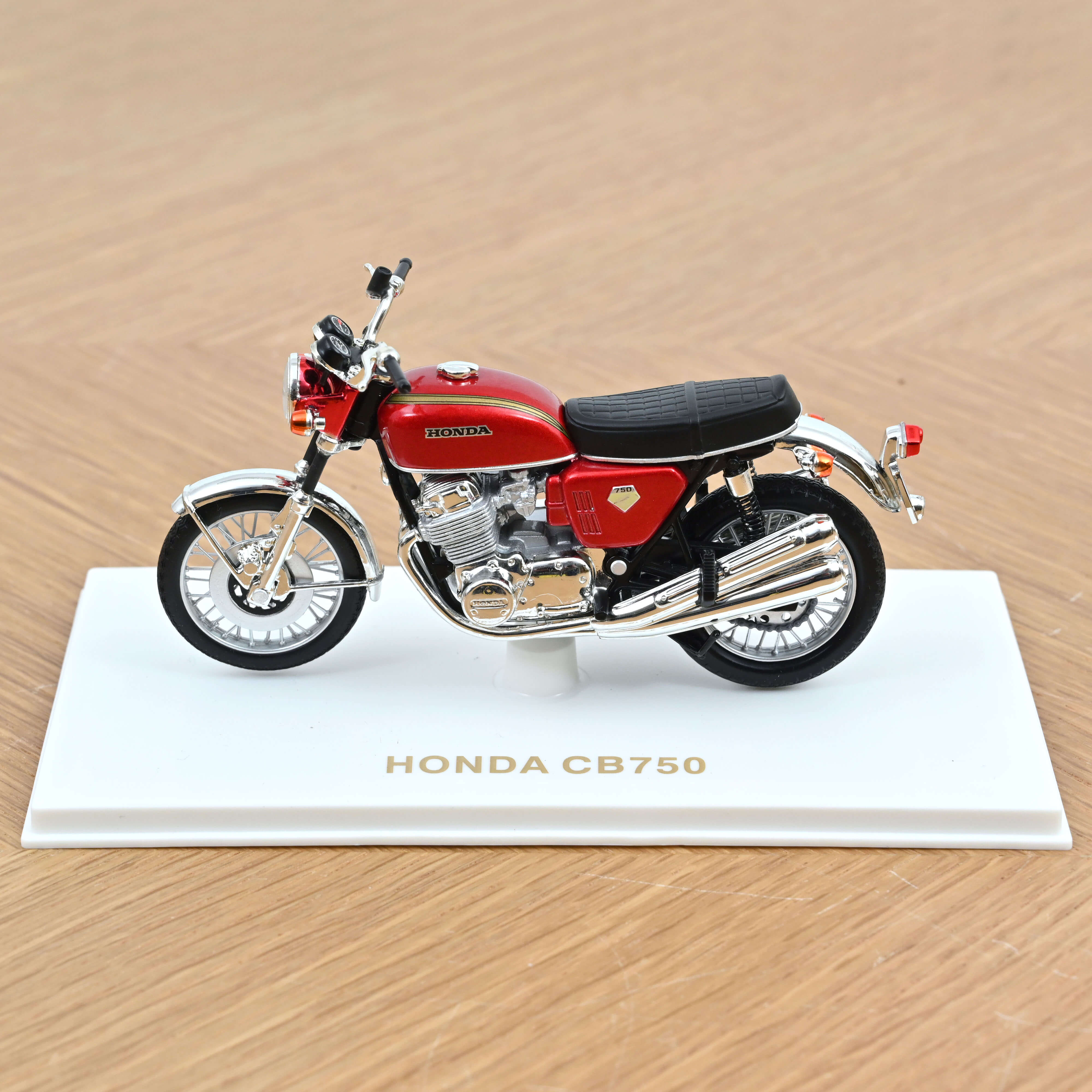Wir haben dieses Modell in einem metallic-roten Lack nachgebildet, mit sorgfältigen Details und glänzendem Chrom, die Liebhaber von Vintage-Motorrädern begeistern werden.