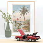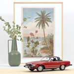 "Ewing 4" - the popular Bobby Ewing drove through the series in this red 450 SL. He and his wife Pamela sat in the dark brown seats. The typical US bumpers and headlights give the model the very special character that this particular variant of the 450 SL has.