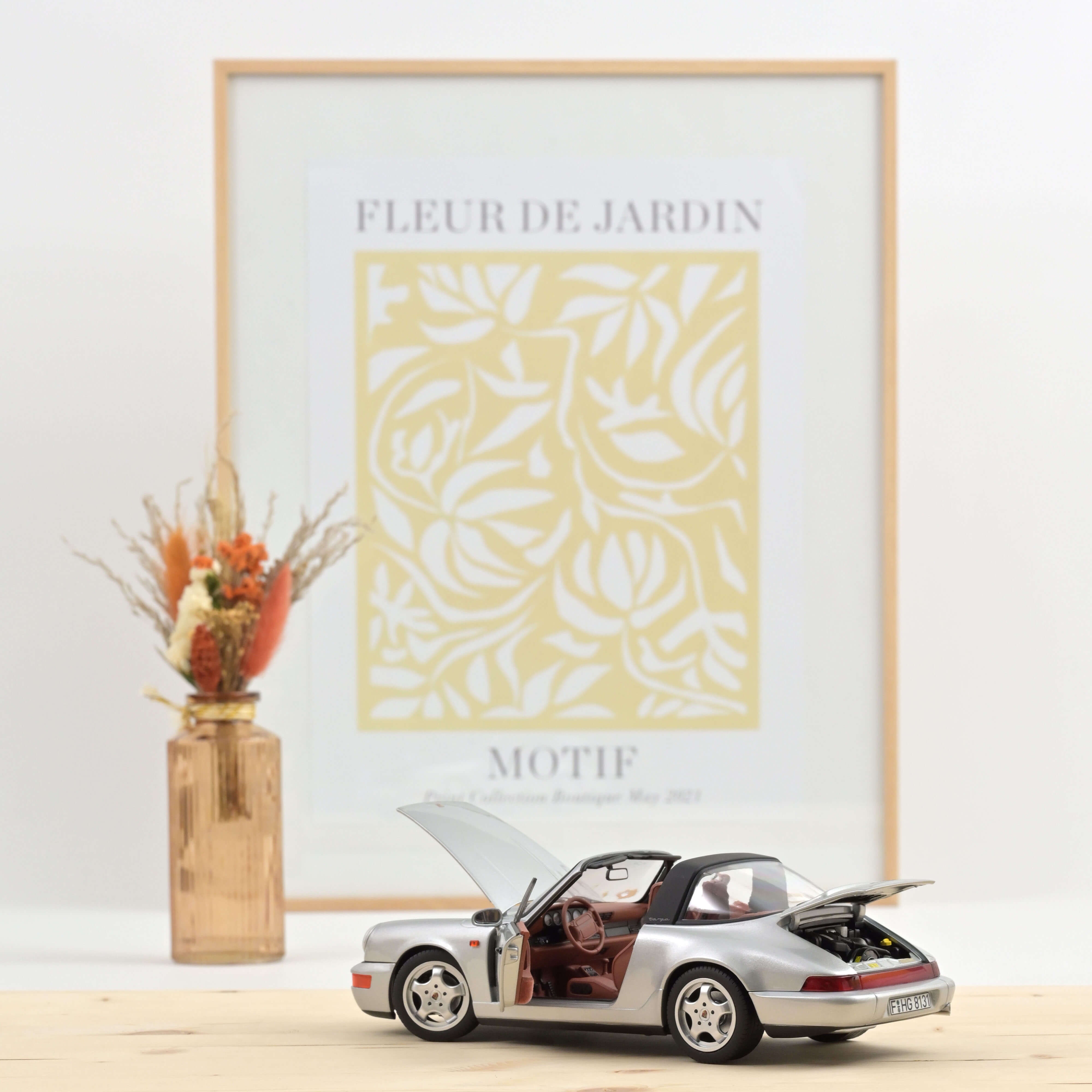 This variant of the Porsche 964 Targa is another one that was originally produced for the Chinese market. We are pleased to make this model available to you in limited quantities. The attractive colour combination emphasises the elegant lines of the 964 series 911. In addition to the perfect proportions, the Norev model not only offers opening doors, bonnet and boot, but also a removable targa roof.