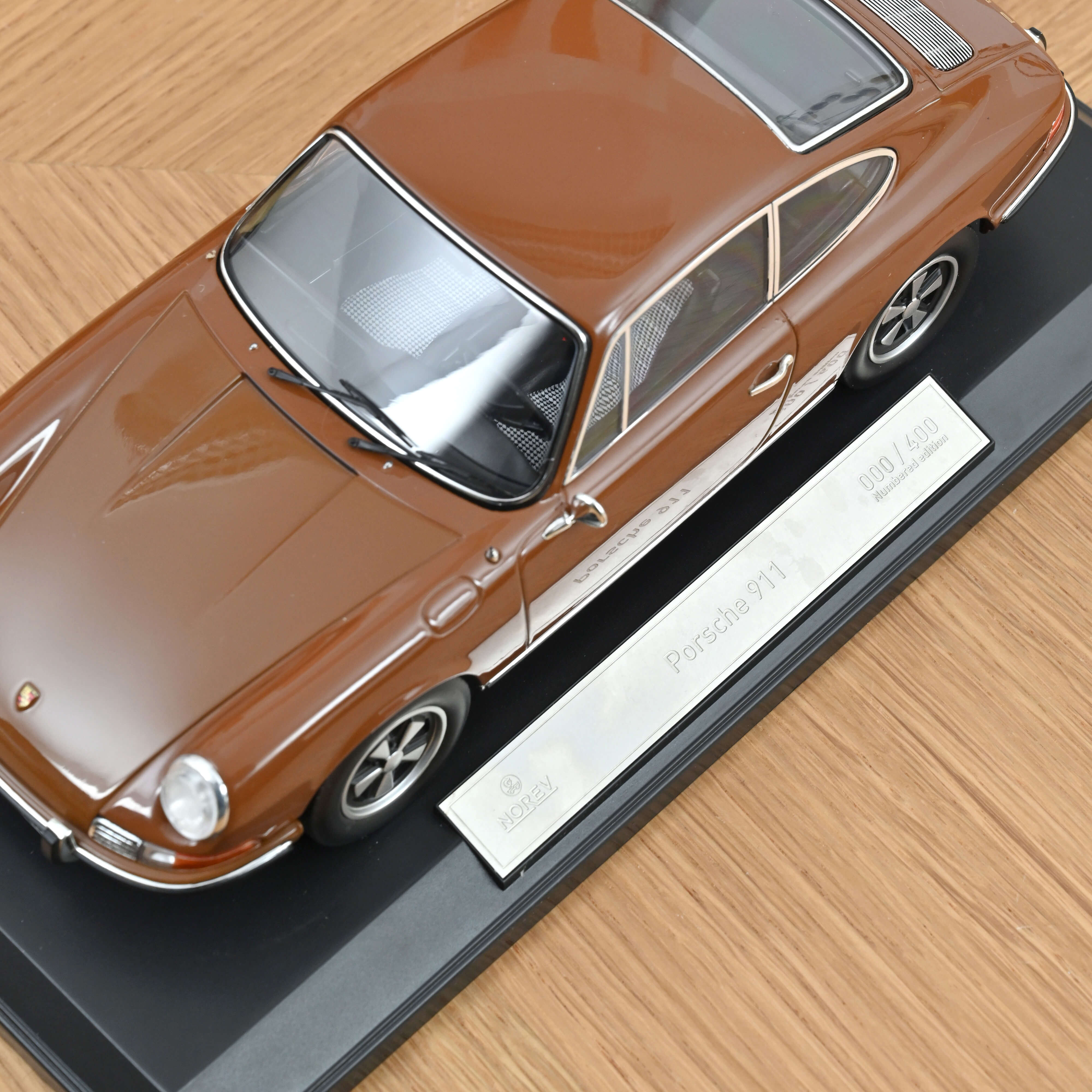 Sepia brown - this is the name of the colour we chose for our model. Combined with a black interior, it shows a typical 911 from the time when car parks were just as colourful as the Swinging Sixties.