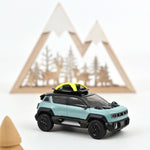 In order to announce the future electric version of the Renault 4, Renault presented an "adventurous" concept car in 2022. This was presented in 2023 in a new version in a water-green hue with fluorescent yellow tie-down straps.