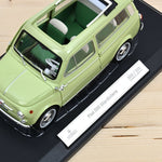 The miniature is painted in Oasis Green. Its 4 opening windows and open roof give a good view of the interior, with green and cream seats.