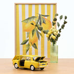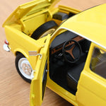 The 1974 Simca 1000 LS in Maya Yellow, reproduced at 1/18 scale by Norev, is a must-have for collectors. This detailed model features four opening parts, showcasing the interior and the rear-mounted engine. Steerable wheels enhance realism and interactivity. With its vibrant colour and classic design, this miniature perfectly captures the elegance of the original car, making it an excellent addition to any collection or a delightful piece for vintage car enthusiasts.