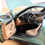 Those who opt for the touring version of the 911 GT3 are choosing understatement – insofar as this is possible with a high-performance sports car with 510 hp. Those who also choose a malachite green paint finish in combination with a special cognac interior will probably get the ultimate combination of sportiness and elegance. You can admire both the flawless paintwork and the tasteful interior of our GT3 in scale 1/18 – the former on the perfectly proportioned bodywork, the latter thanks to the opening doors and boot. A model with inner and outer values!