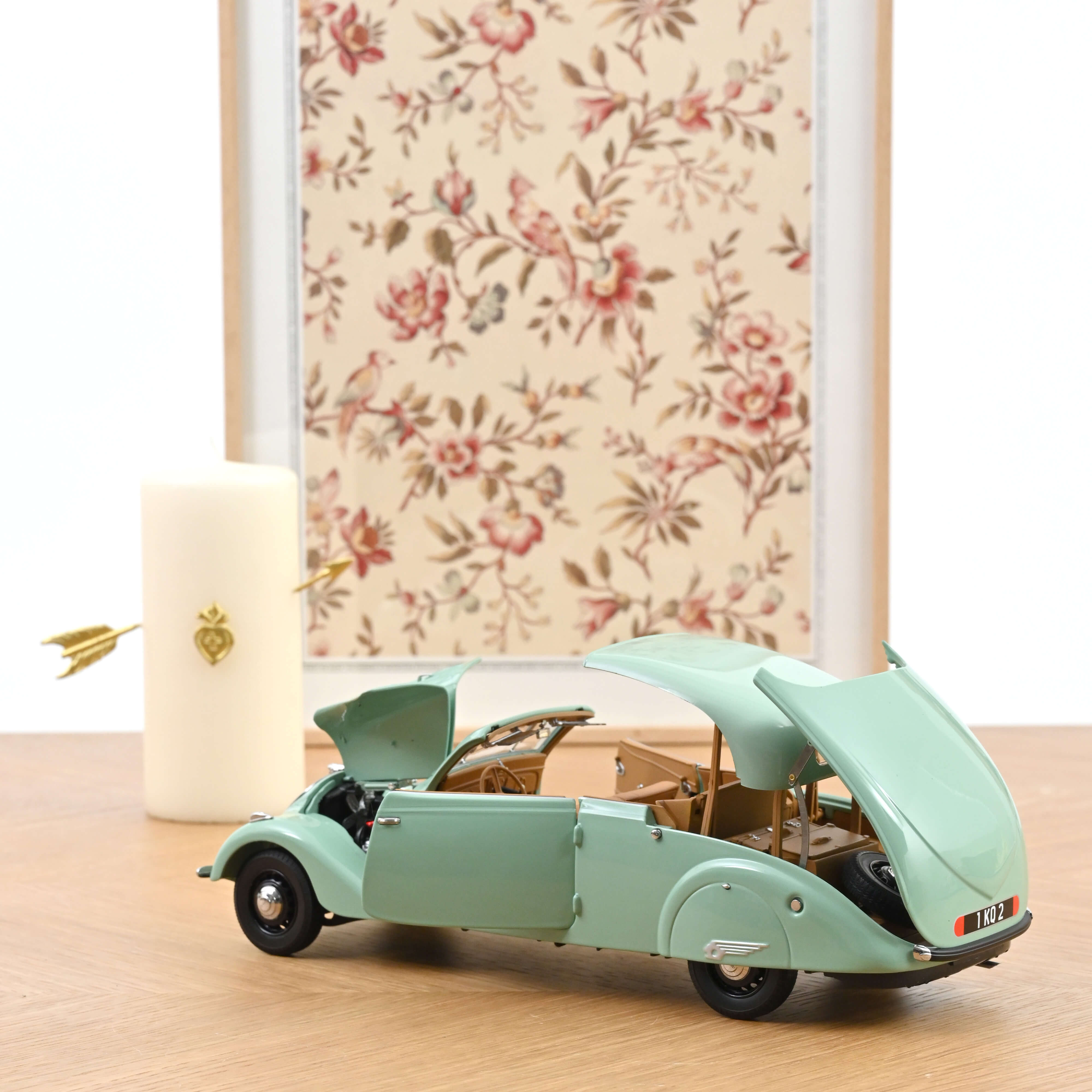 Designed by dentist and amateur designer Georges Paulin, the Peugeot 402 Éclipse was the first production car with a retractable roof, patented in 1933. Limited to 200 pieces, this miniature celebrates the ingenuity and elegance of a model that made history.