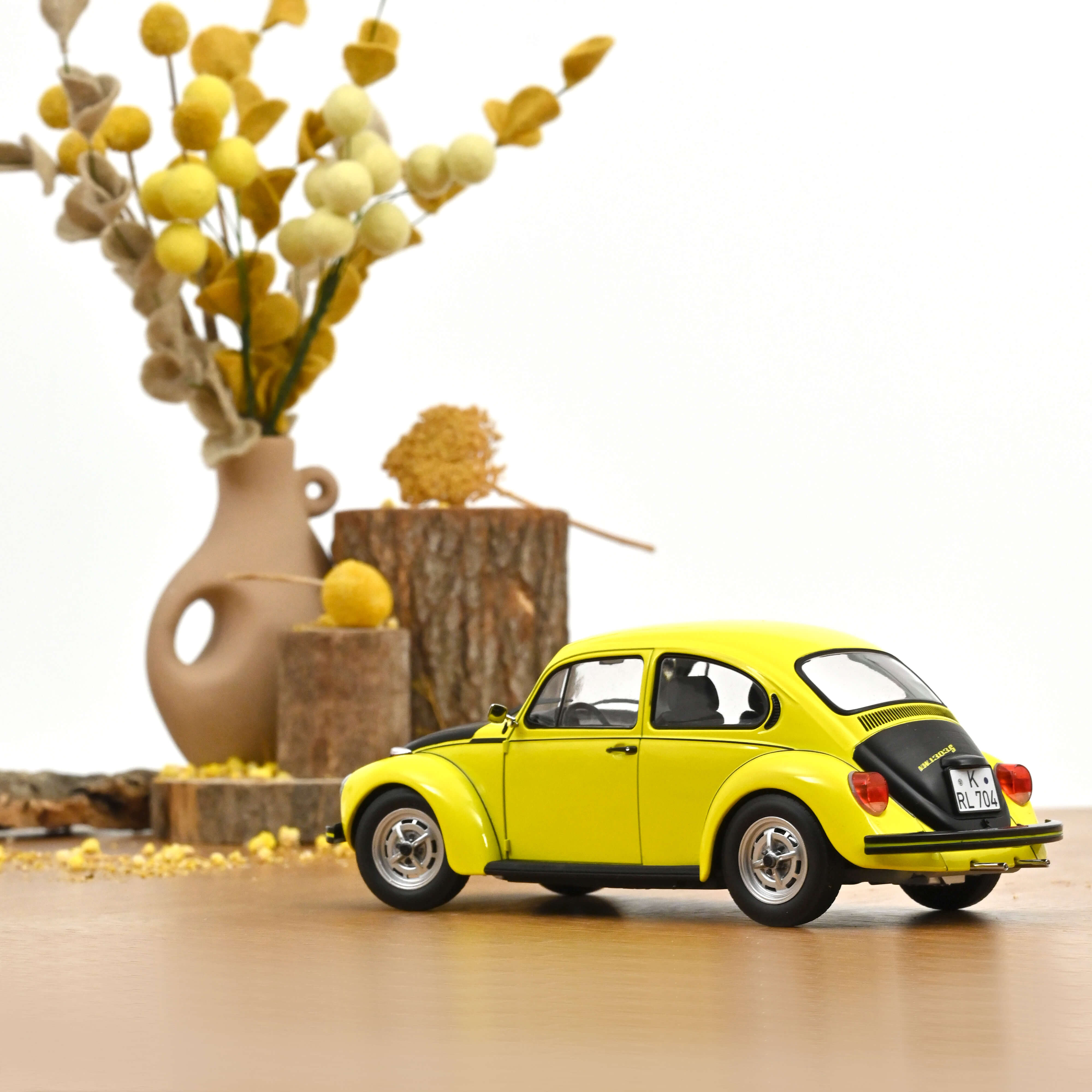 For this reproduction, Norev draws inspiration from one of the most iconic special versions of the VW 1303. Its striking yellow and black livery, steel sport wheels, sport steering wheel and seats, along with bumpers without rubber strips, give it a bold and immediately recognizable character. Despite its dynamic appearance, it retained the standard mechanical specification of a 1303 S.