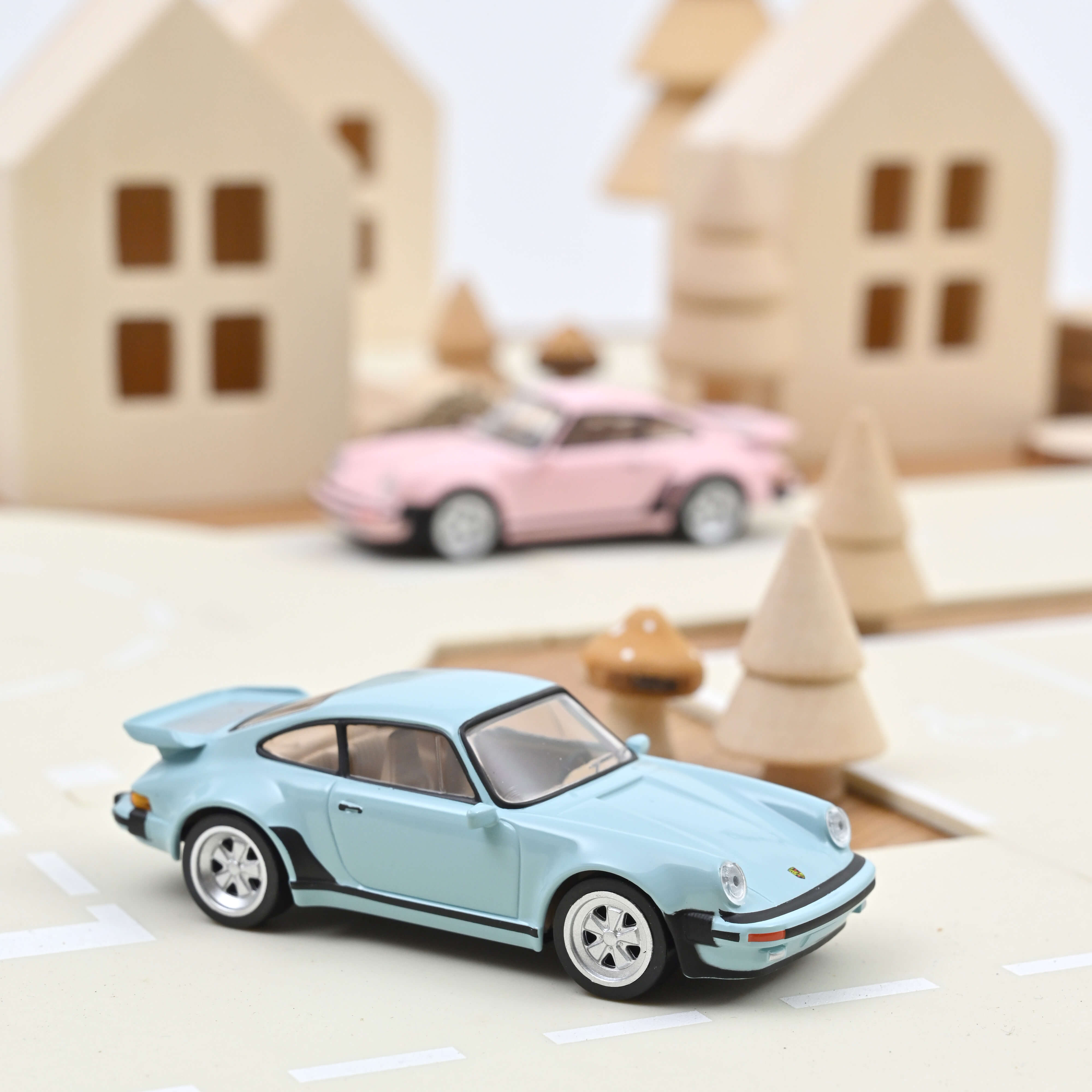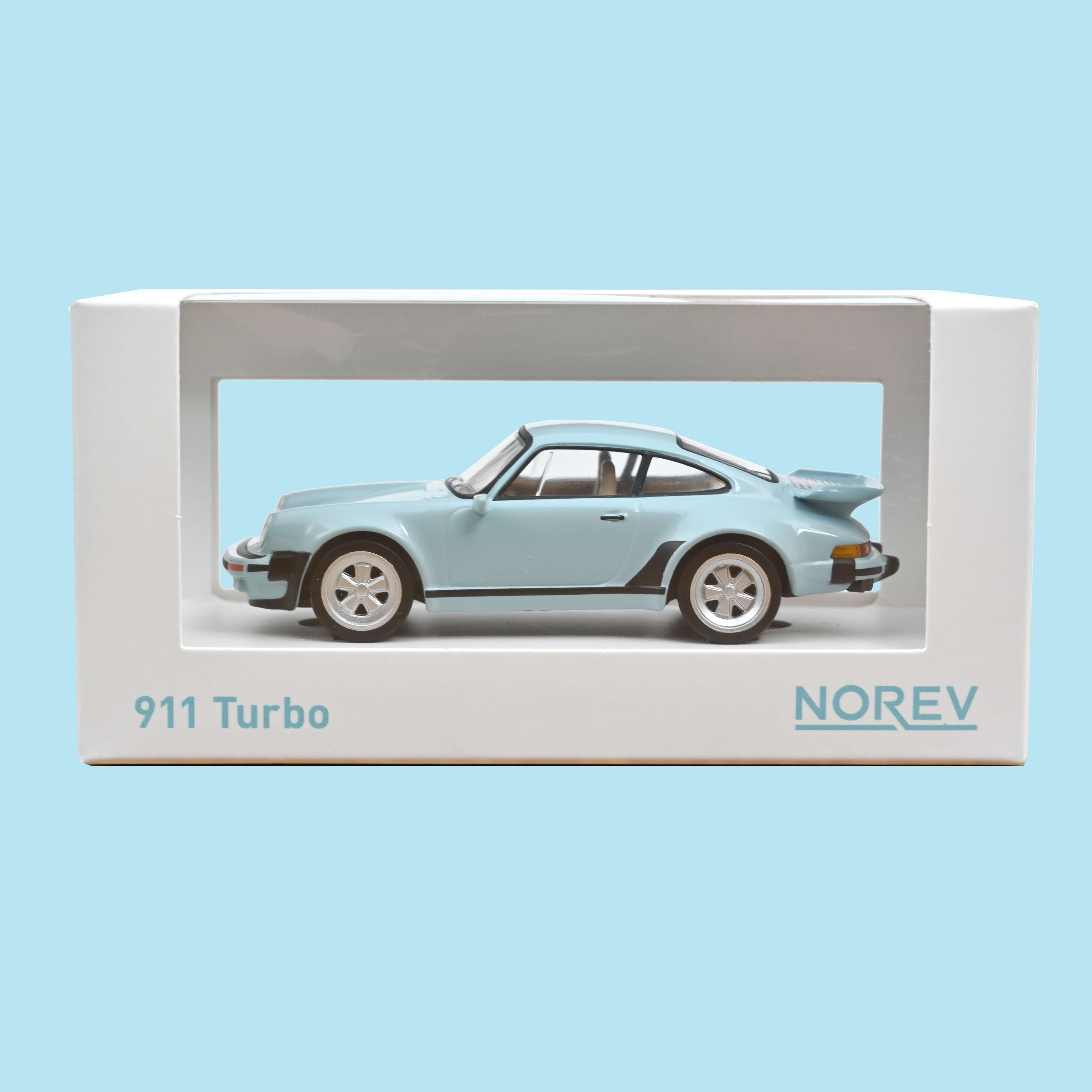Our scale model reproduces this legendary 911 Turbo in an elegant light pastel blue color. With its sporty design, 300 hp, and top speed of 260 km/h, the first generation of the Porsche 911 Turbo has become a true automotive icon