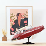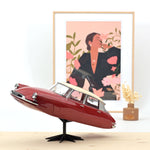- sculpture of a levitating red and cream coloured fairing DS that was enthroned in the lobby of the iconic Peter Mullin Collection in California during the 2017 Citroën car temporary exhibition