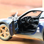 The Norev model in 1/18 scale sets new standards with the elaborate decorations, the true-to-original off-road tyres, the detailed interior and the faithfully flocked boot in the front, which can be admired through the opening doors and bonnets.