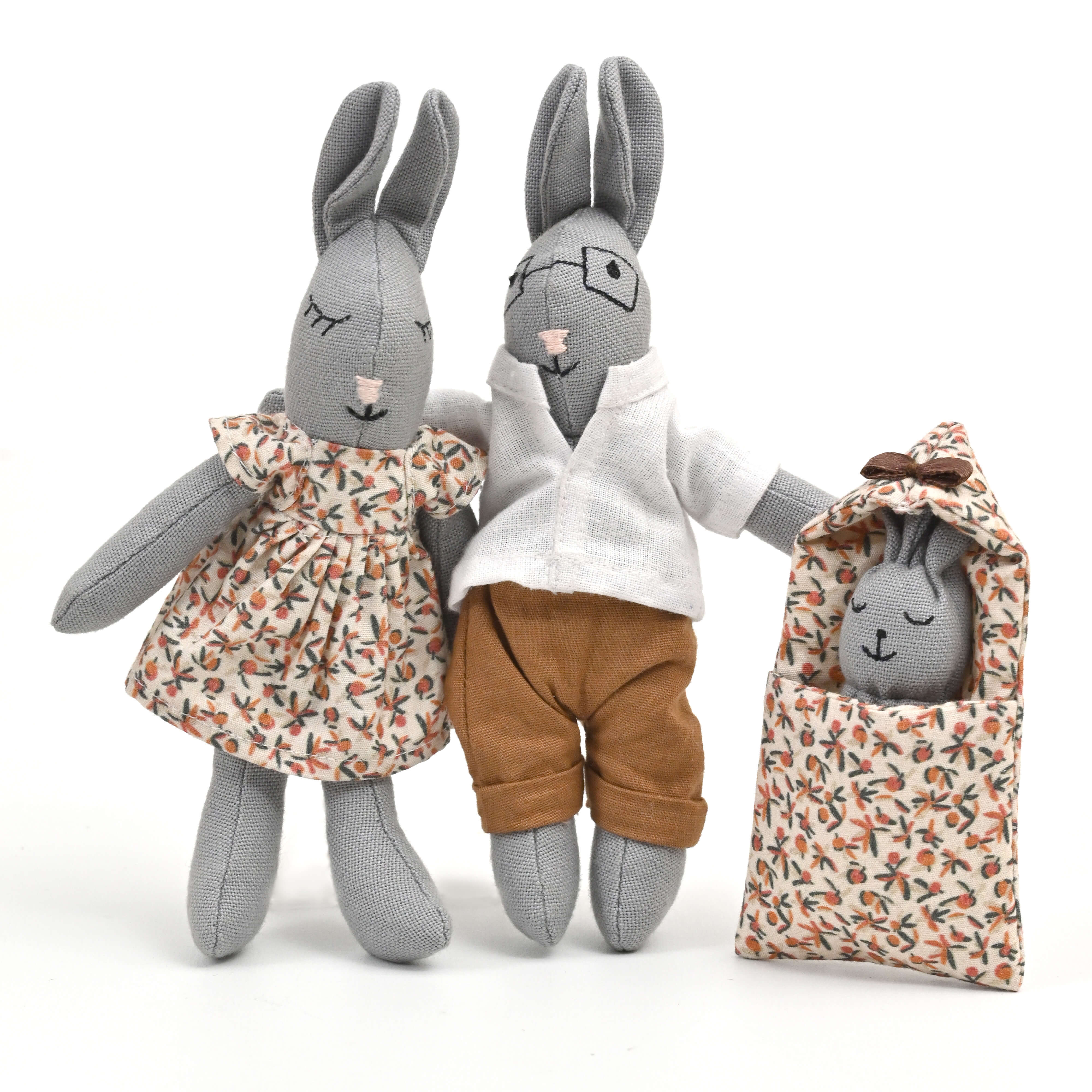 - Cuddly rabbits in organic cotton, hand-stitched and embroidered.