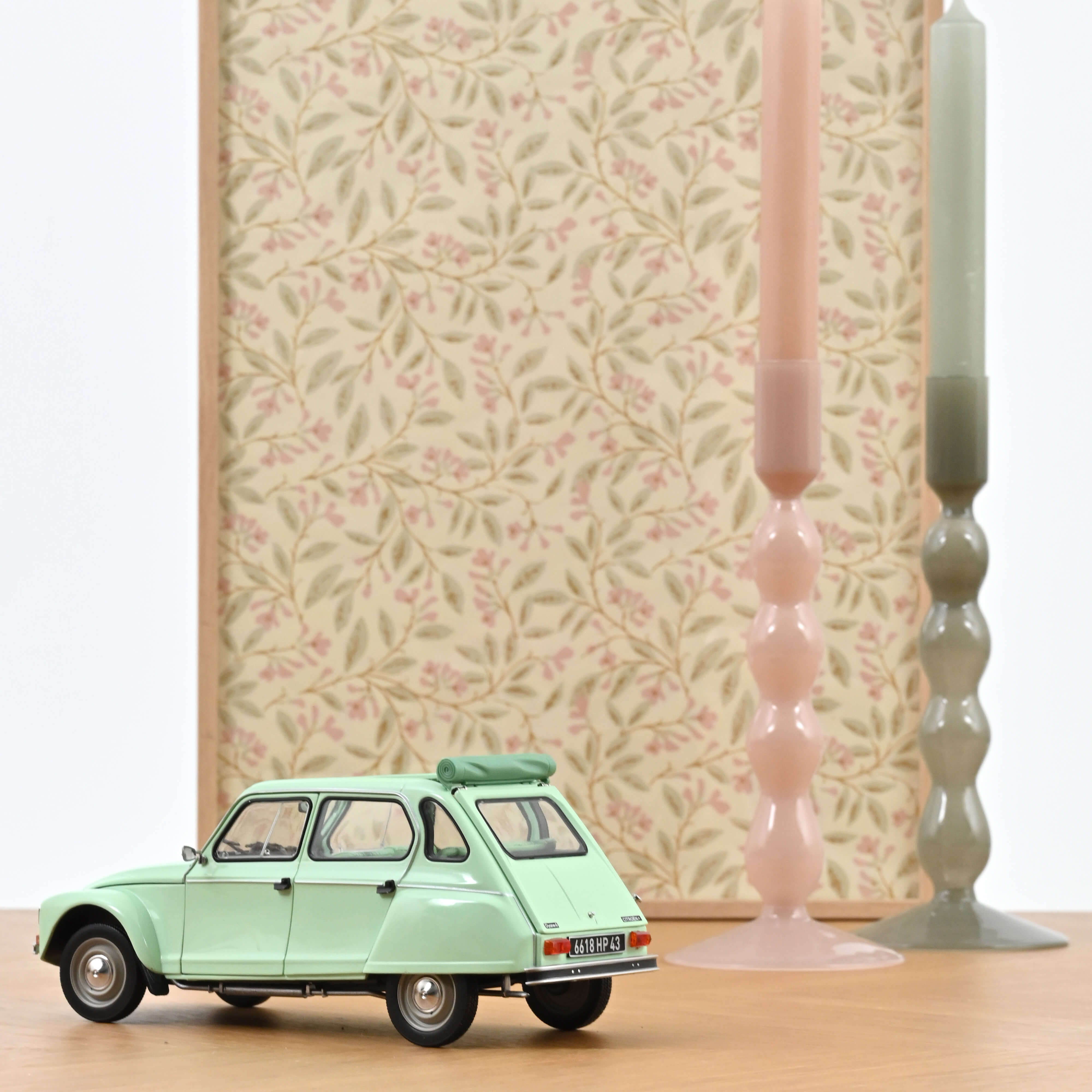 The concave doors of the Citroën Dyane were not a stylistic choice. Citroën designer Robert Opron explained that technical constraints, particularly regarding the limited width of the Dyane, required this shape for rigidity. The Jade Green colour, previously seen on the 1982 2CV (reference 181486), is featured here. Collectors can display these two models together for a striking visual effect.