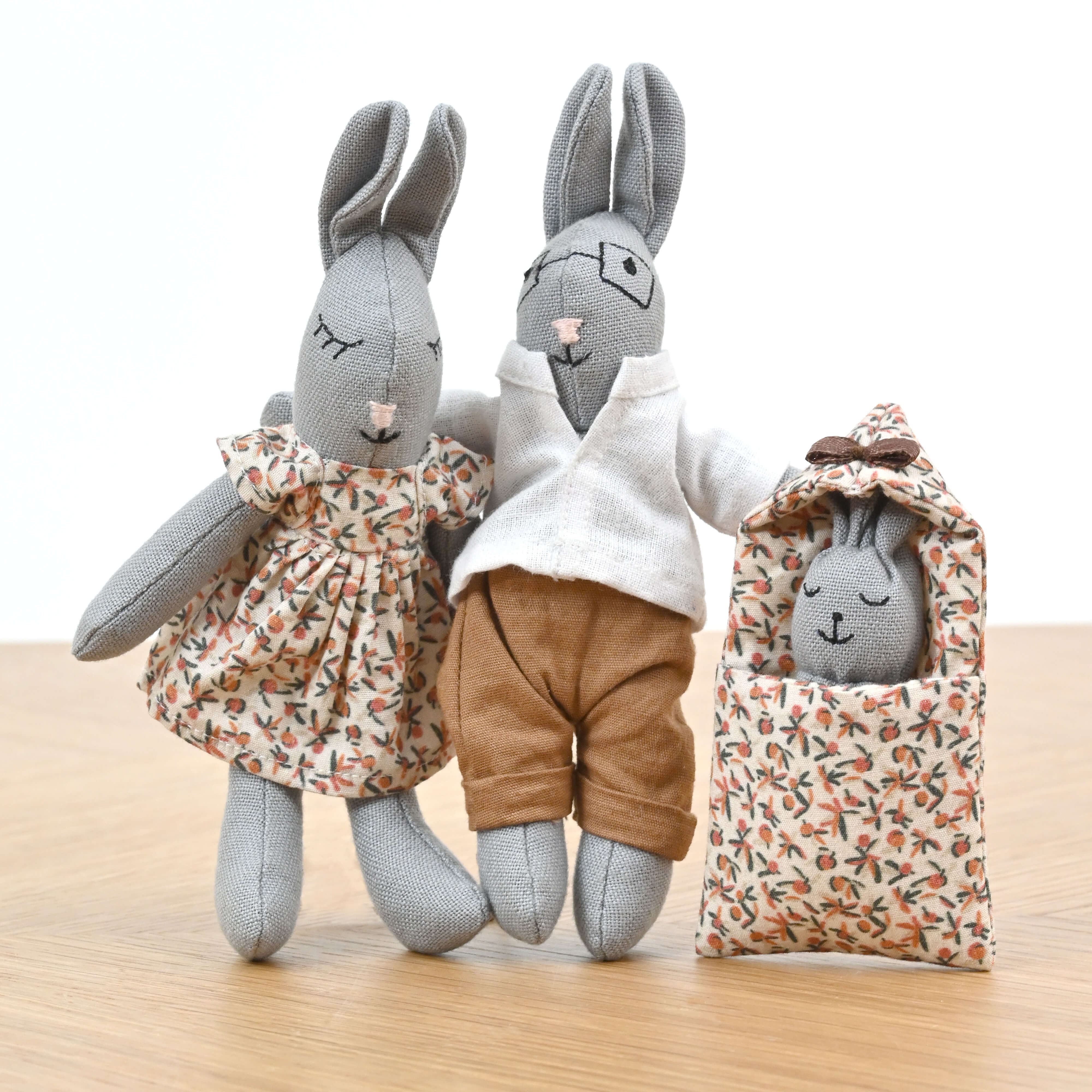 - Cuddly rabbits in organic cotton, hand-stitched and embroidered.