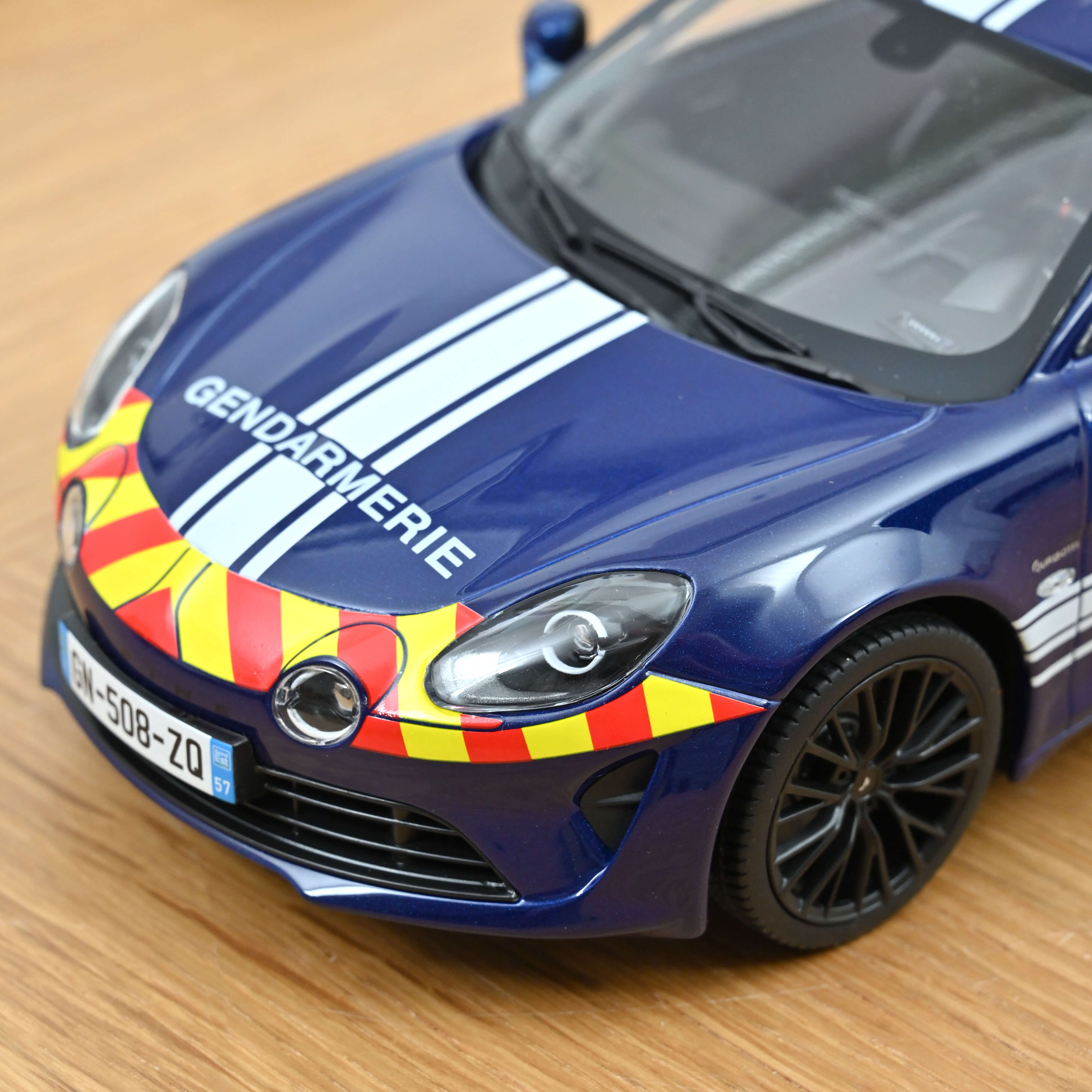 Norev offers a 1:18 scale model of the Alpine A110 S Gendarmerie, true to the official cars and registered in the Grand Est region (department 57).