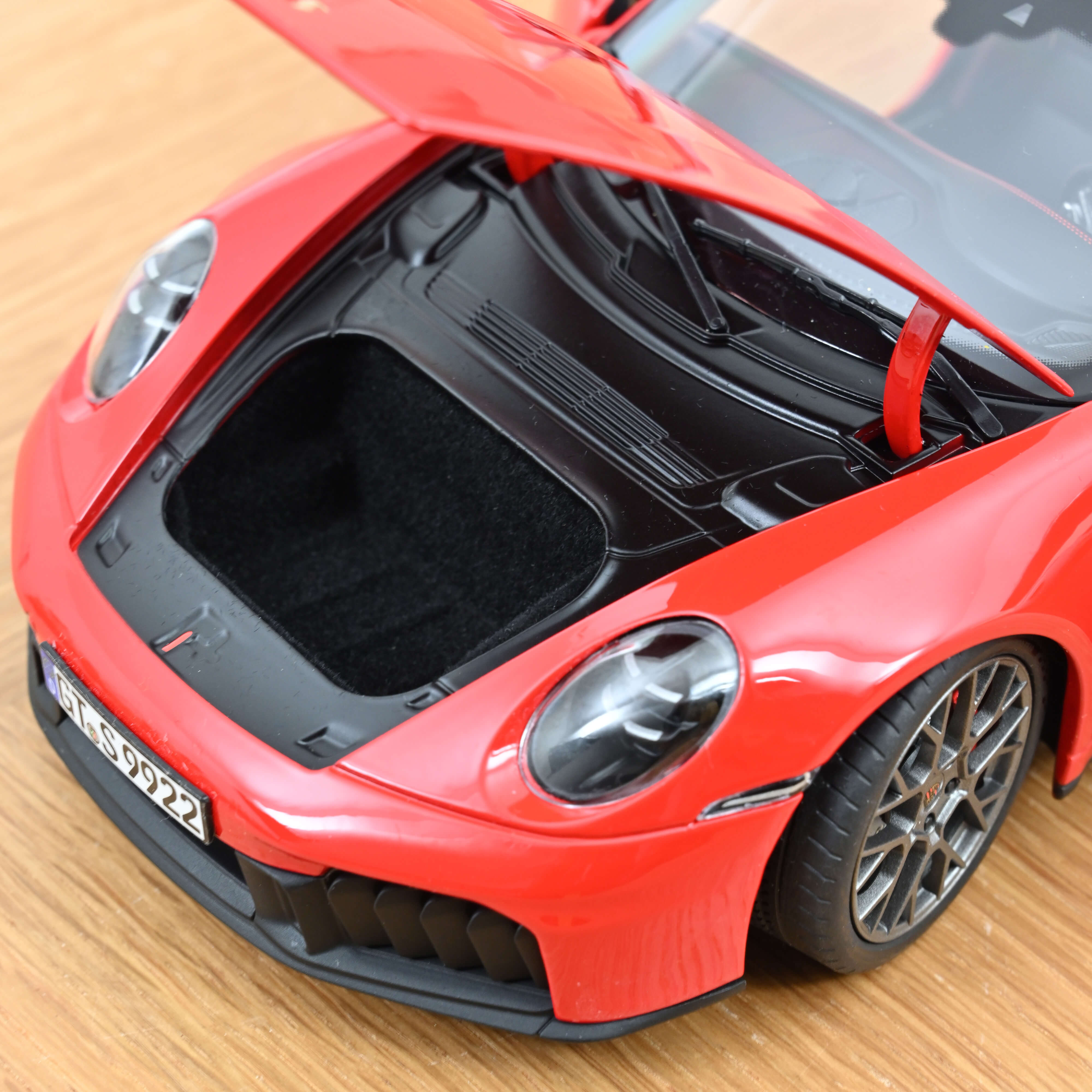 Our model perfectly replicates all the characteristic features of the GTS and impresses with its perfect proportions, three opening parts, a highly detailed interior and perfect decorations. The photo-etched brake discs round off the perfect overall impression. The beautiful Indian red paintwork is one of the classic colours that looks great on any 911.