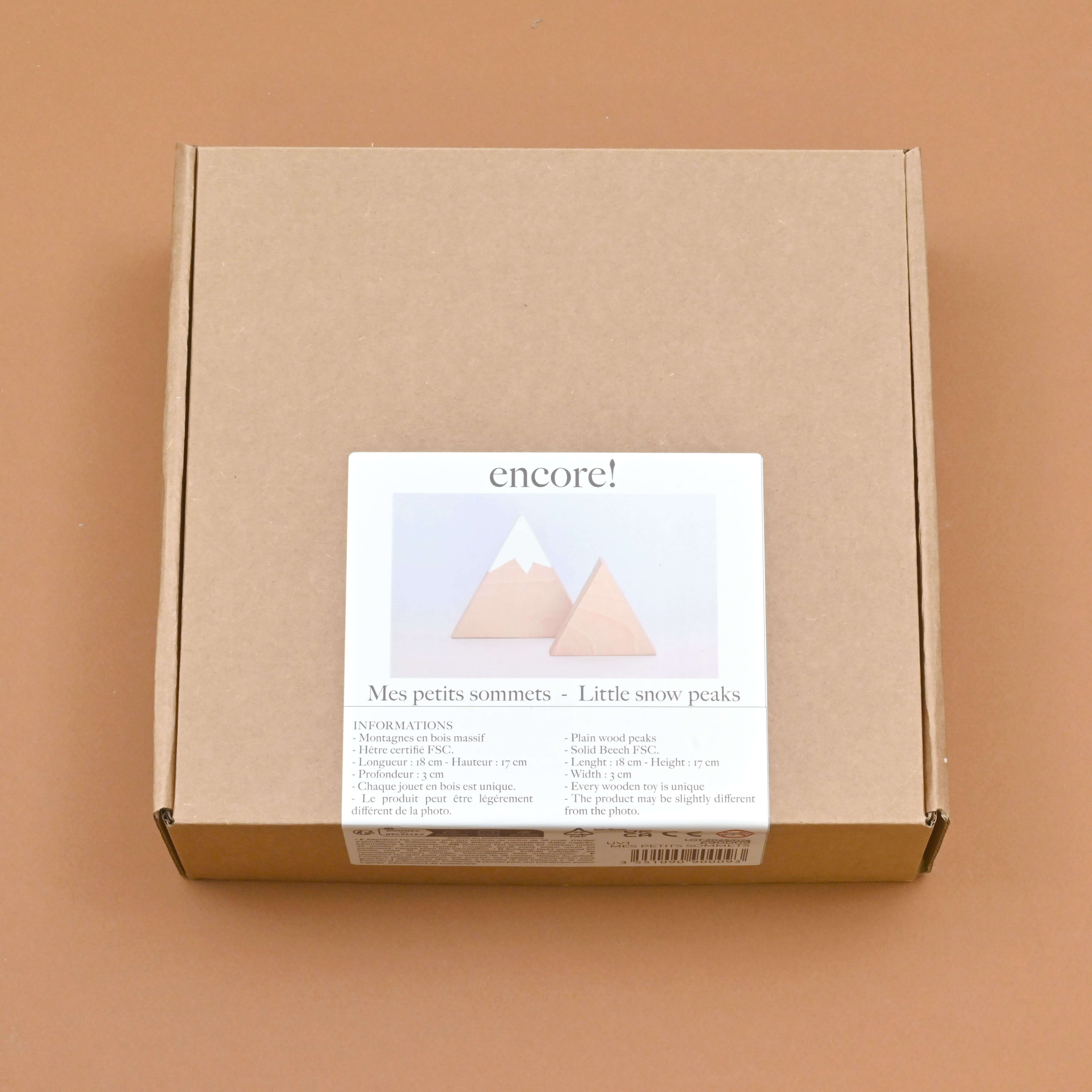 Nous sommes deux petites montagnes en hêtre massif. Nous sommes autant un objet de décoration qu'un décor pour l'univers des lapins. Il souffle avec nous une ambiance de grands espaces, de nature sauvage et de sommets à gravir. En route !