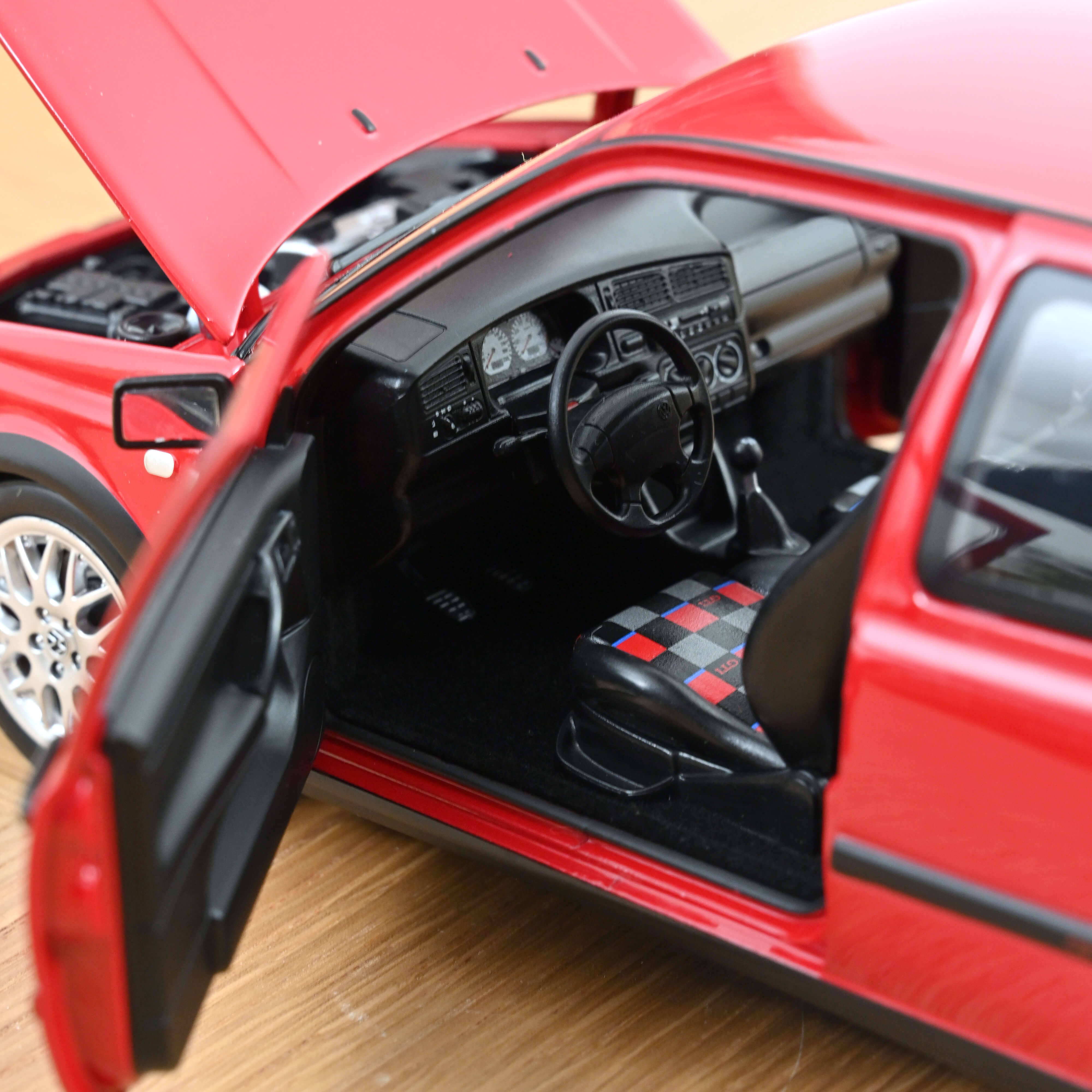 Notre modèle présente l'une des variantes les plus recherchées de la Golf - l'édition « 20 ans de GTI ». Découvrez sur ce modèle peint en rouge Tornado les jantes BBS typiques, les feux arrière partiellement obscurcis ou le rembourrage spécial des sièges.